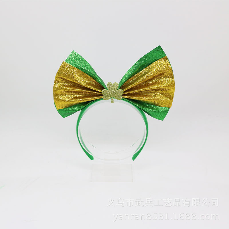 Новый стиль ирландский фестиваль бант обруч на голову День Святого Патрика Зеленая маленькая шапка обруч для волос Клевер ожерелье
