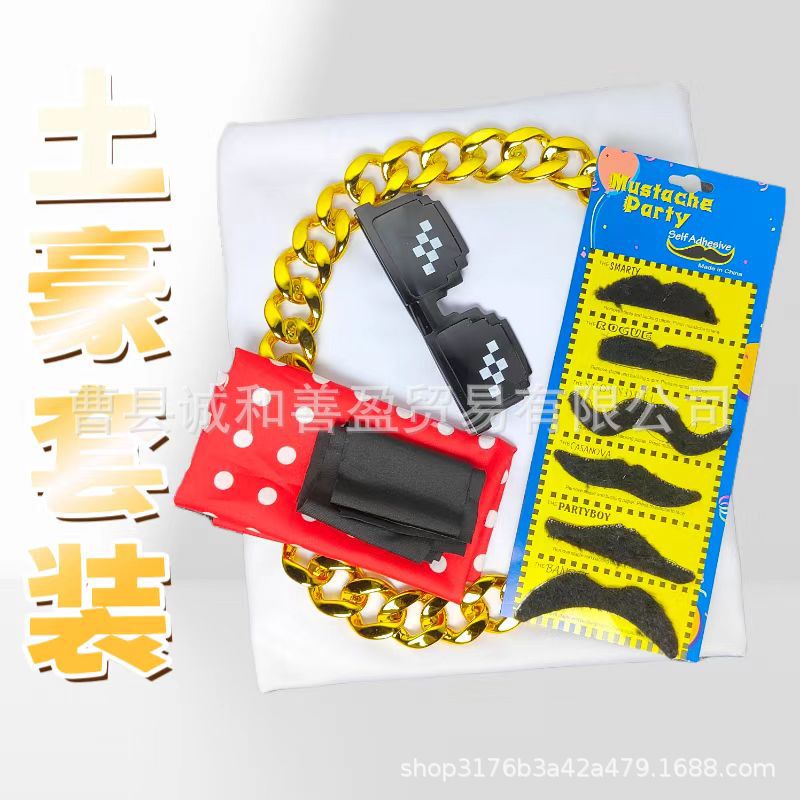 Комплект из трех предметов: богатая платка + халат + борода.; Набор из пяти предметов насыщенного платка + халат + борода + ожерелье + очки