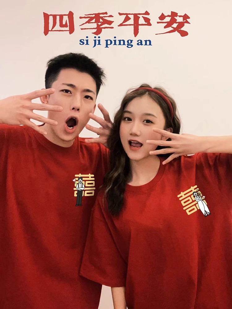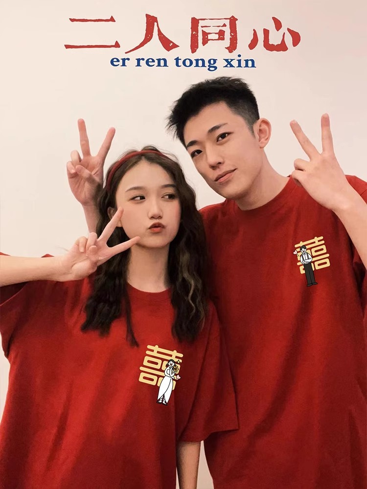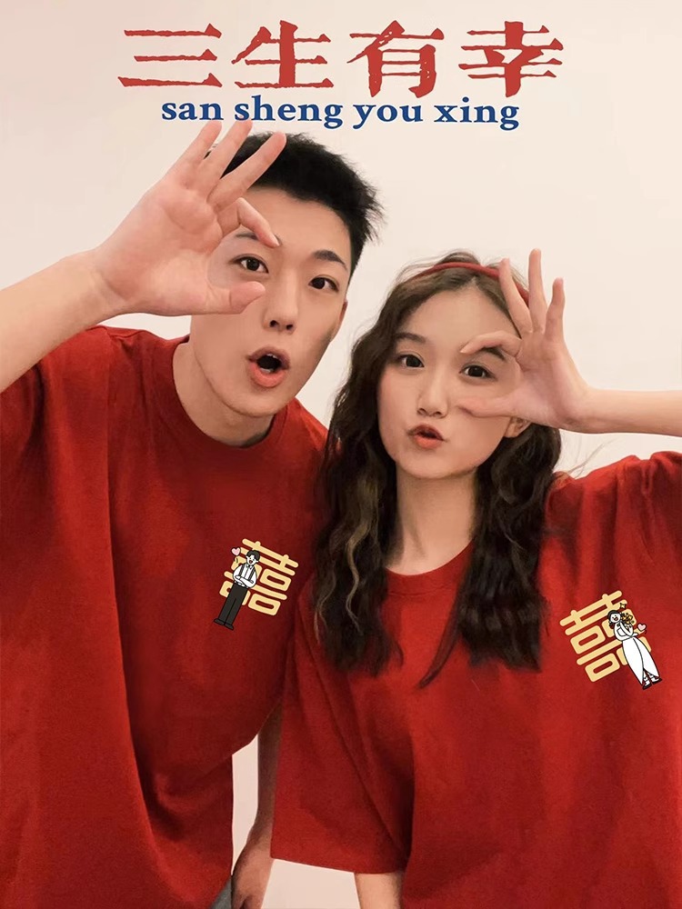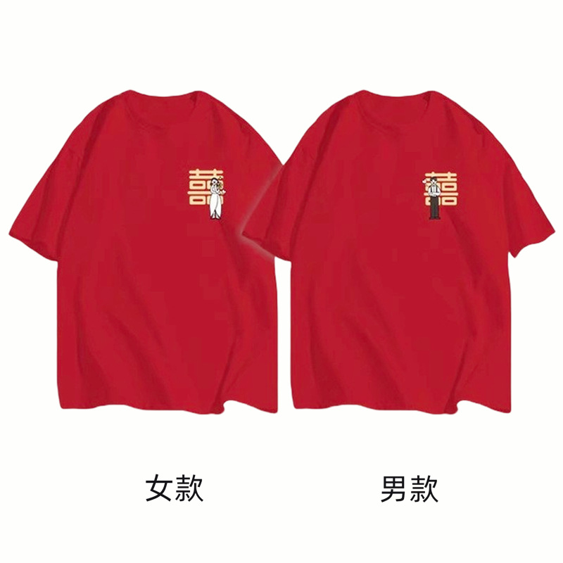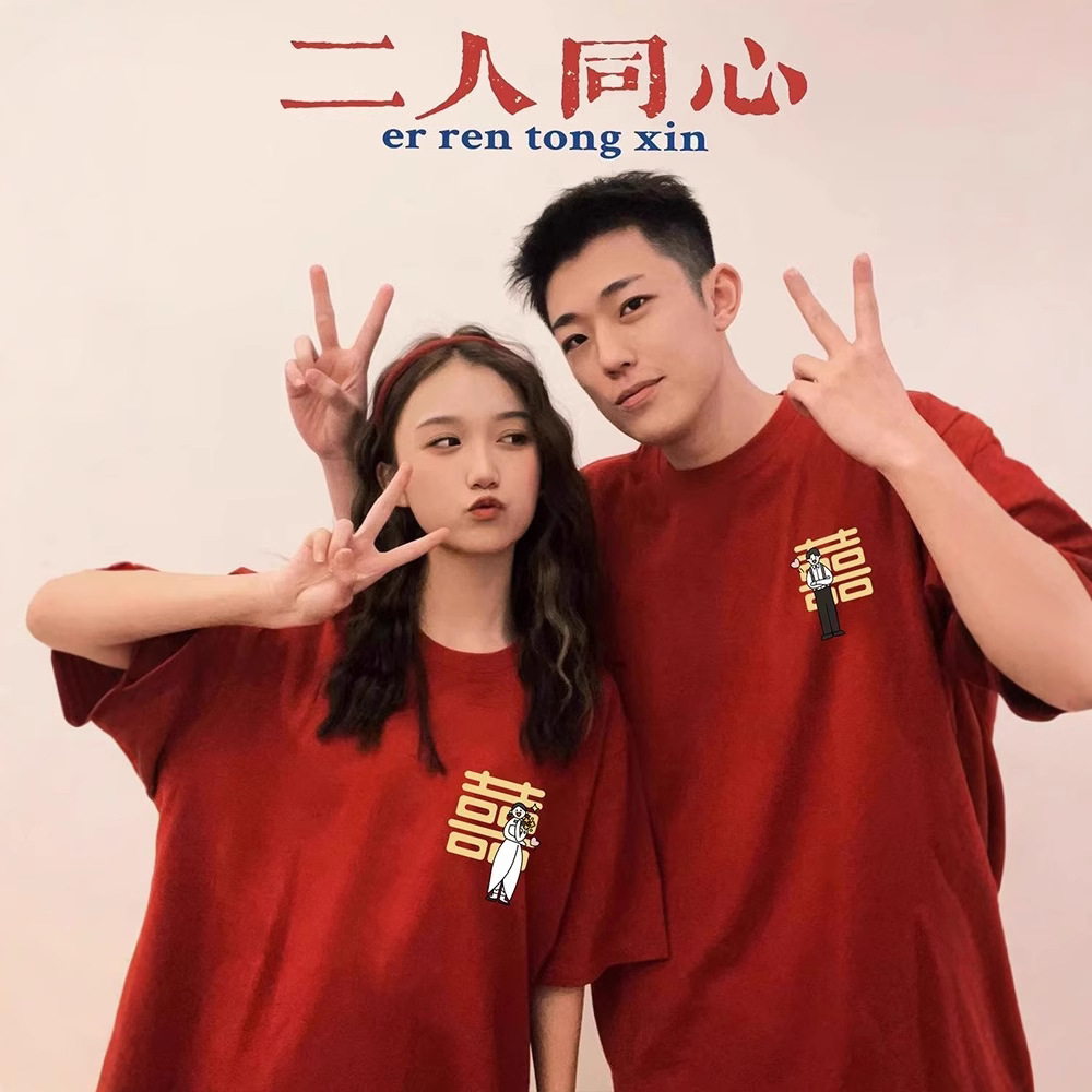 Пары одеваются хлопчатобумажные футболки с короткими рукавами 2025 Новый год