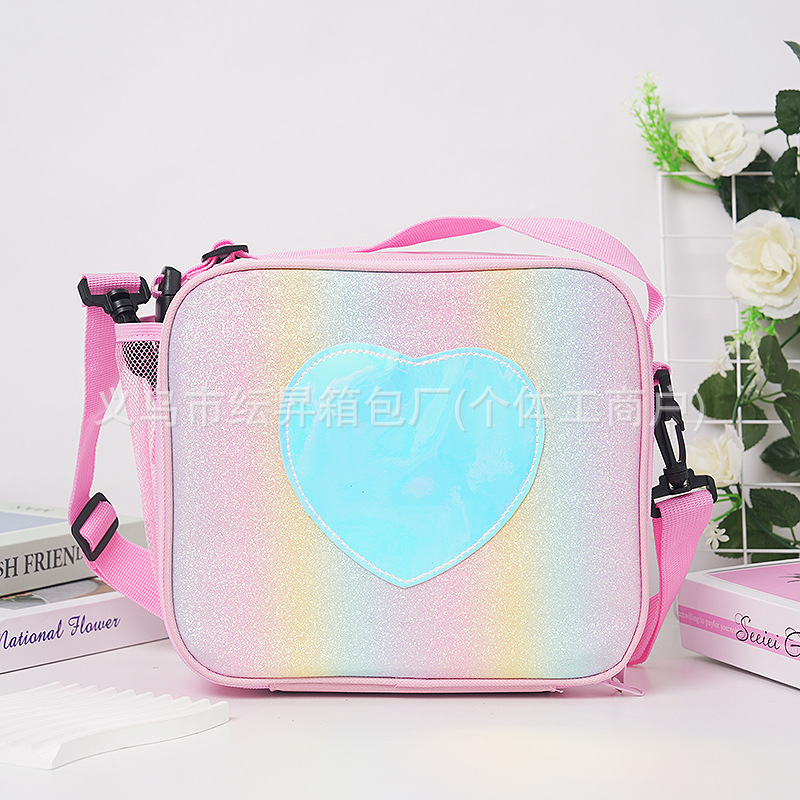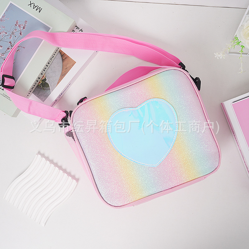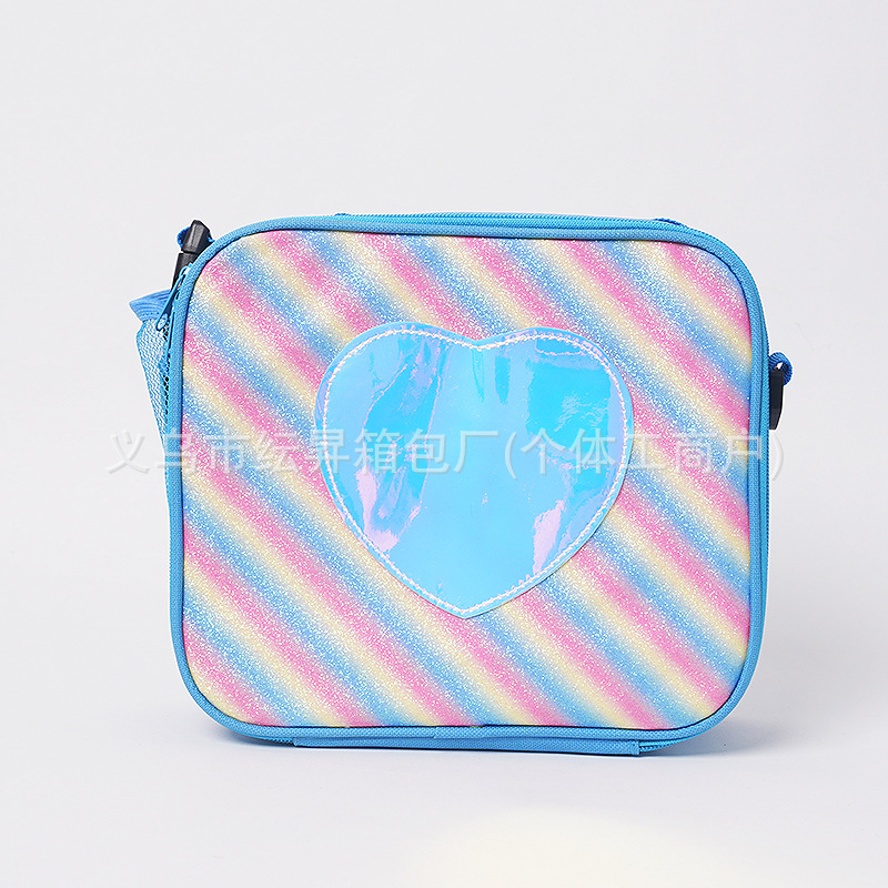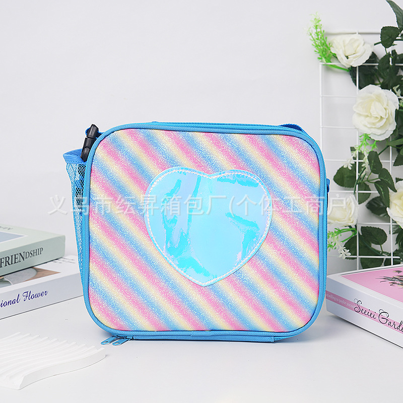 Сумка для обеда с блестящим лазерным эффектом и радужными полосками, изолированная, с одним отделением, водонепроницаемая, портативная, для использования на открытом воздухе.