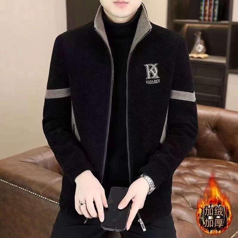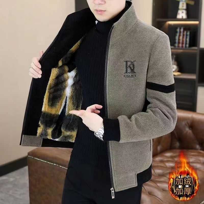 Осенняя и зимняя мода шерстяная куртка мужская плюшевая толстая куртка с воротником тренд красивый повседневный шерстяное пальто