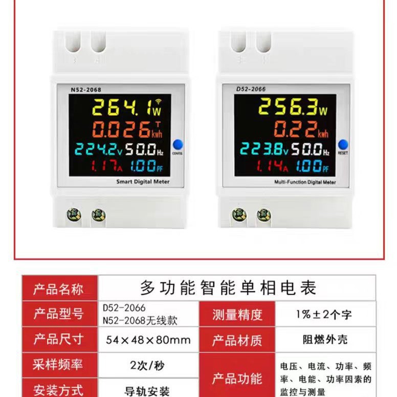 Бытовой счетчик электроэнергии, однофазный умный счетчик электроэнергии, рельсовый тип 220 В, напряжение, ток, мощность, коэффициент мощности, счетчик энергии