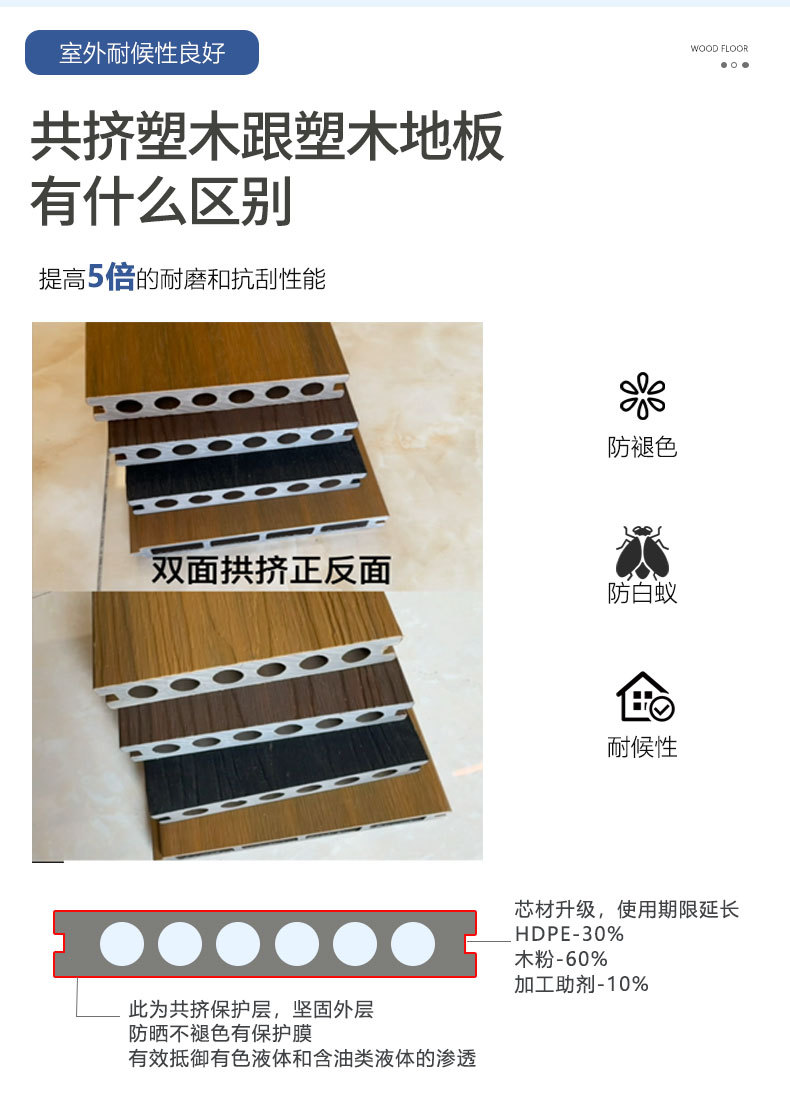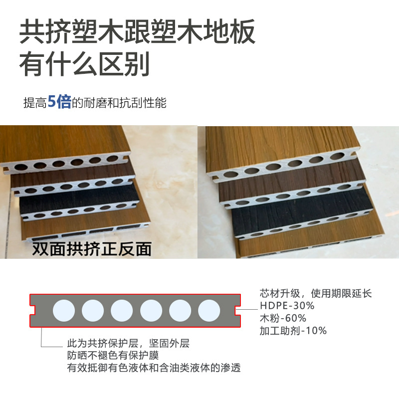 Соэкструдированный древесно-полимерный композит (ДПК) для наружных балконов и дворов, самоклеящийся, на заказ, второе поколение, антикоррозийный, с имитацией текстуры дерева