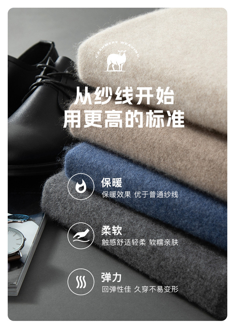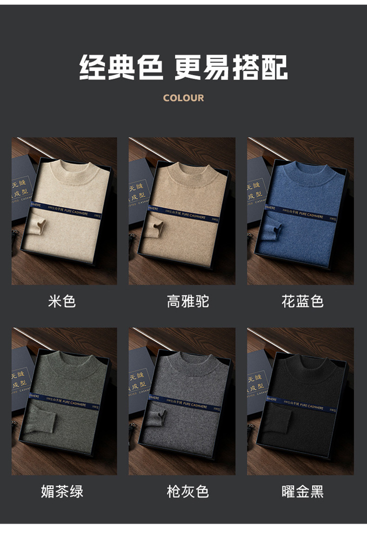 Кашемировый свитер для мужчин 100 чистый кашемир осень-зима новый 12-контактный трикотажный свитер с полувысоким воротником
