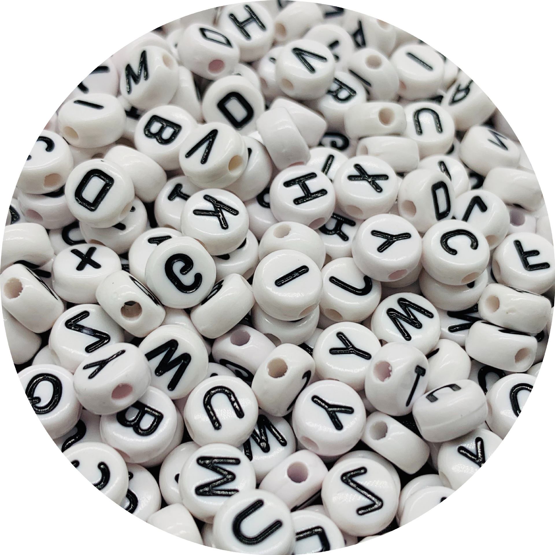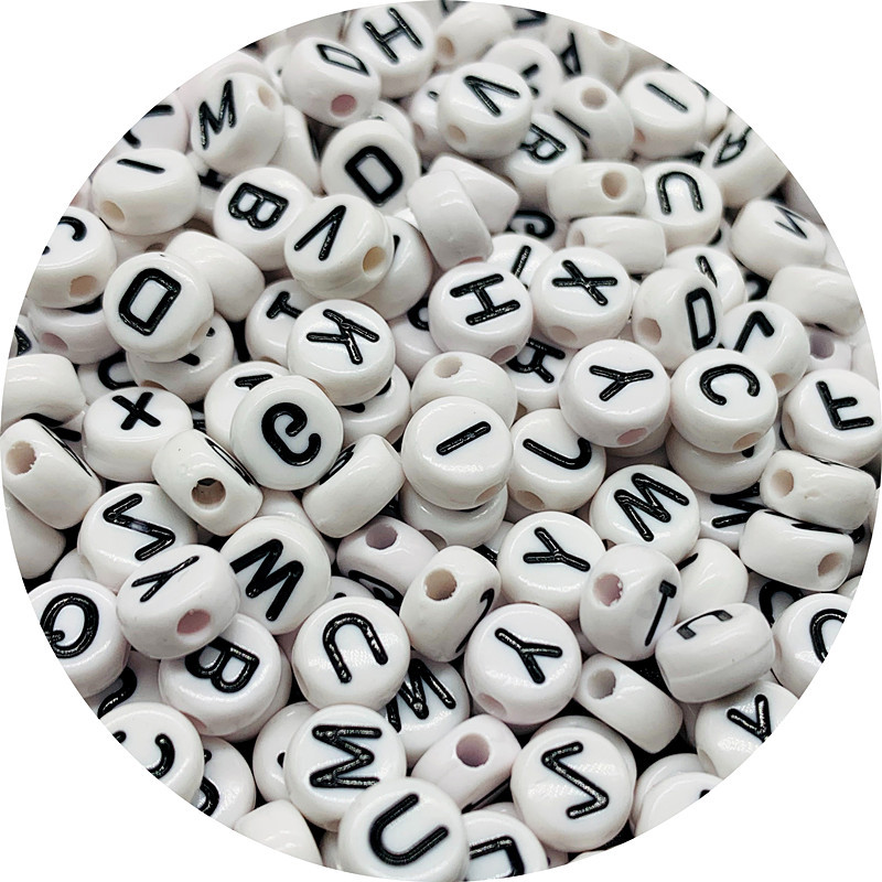 Акриловые буквы на белом фоне, черные буквы, бусины, плоские круглые бусины, ювелирные изделия своими руками, браслет, аксессуары для изготовления бисера, материал для свободного бисера