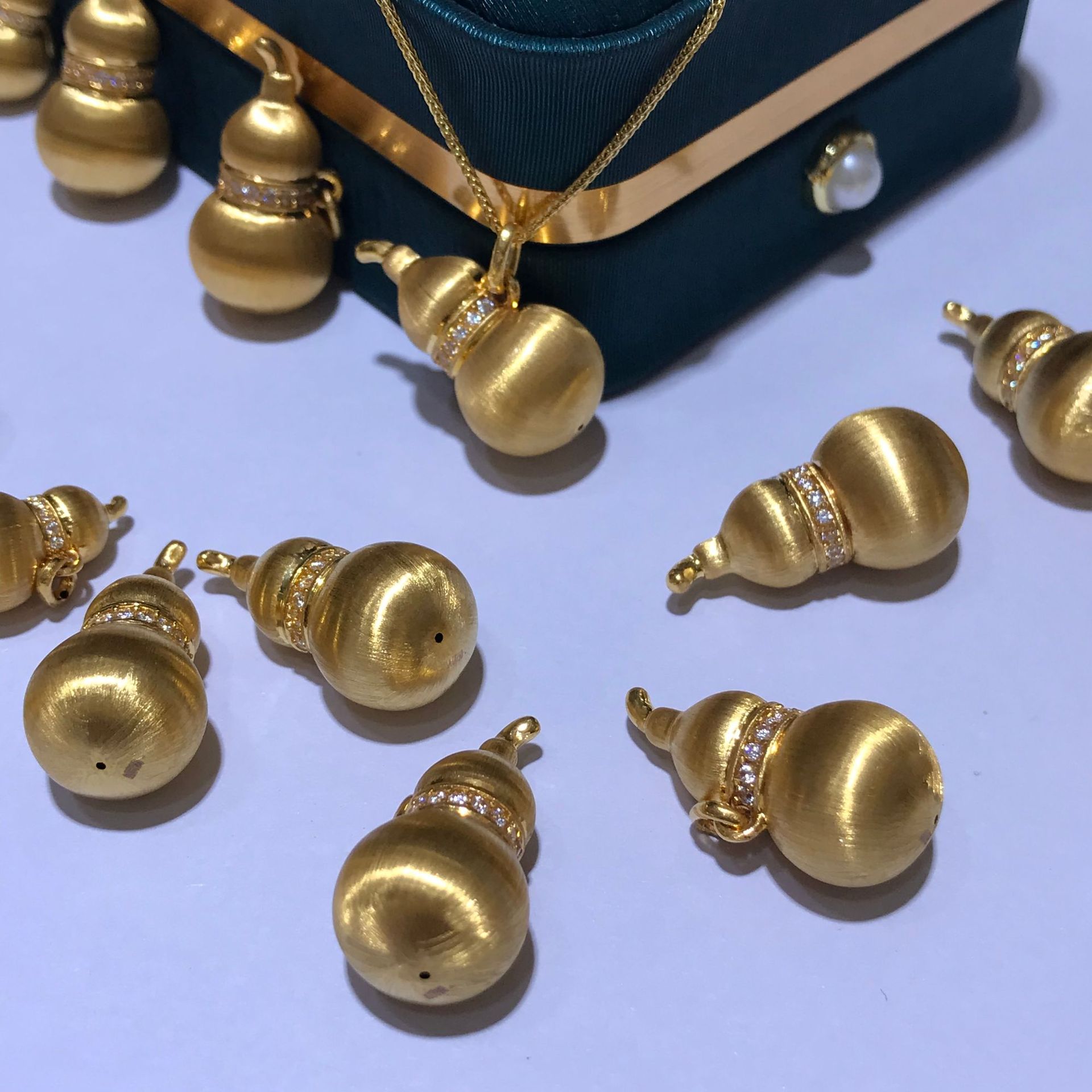 Подвеска-тыква из золота 18 карат, цветное золото au750, древняя матовая трансферная тыква без сердцевины, инкрустированная муассанитом, водная ракушка, золото