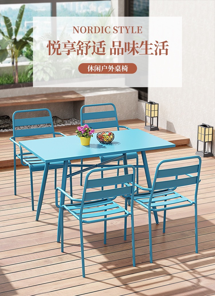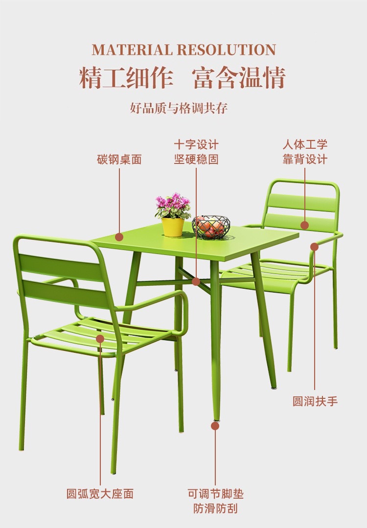 Уличные столы и стулья, водонепроницаемые и устойчивые к солнцу, садовая мебель для террасы, кованый столик для отдыха, обеденный стол и стулья для кафе с молочным чаем