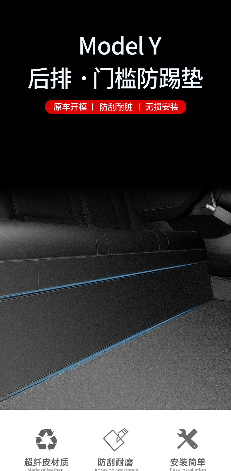 Модель Y, набор из 2 предметов на пороги задней двери; Защитная накладка на заднее сиденье модели Y 1 шт.; Y универсальная защитная накладка под сиденьем 1 шт.