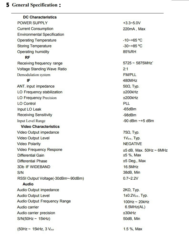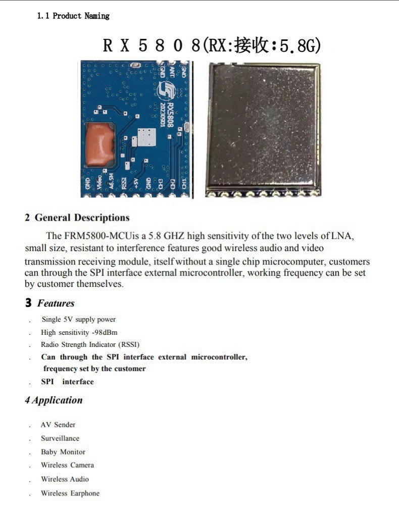 Приемный модуль 5,8G (аудио + видео); Приемный модуль 5,8G (без звука); Приемный модуль 5,8G [без звука]