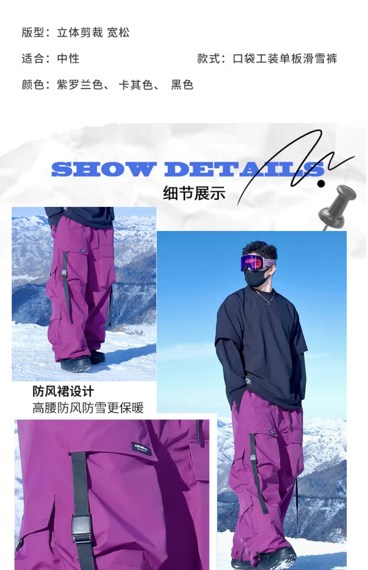 Снежные брюки для мужчин и женщин тяжелая промышленность фиолетовые водонепроницаемые лыжные брюки теплые новые мужские утолщенные 2024 американский шнопки