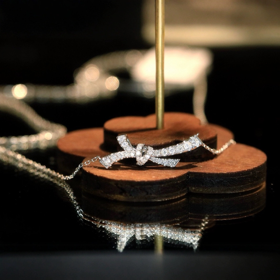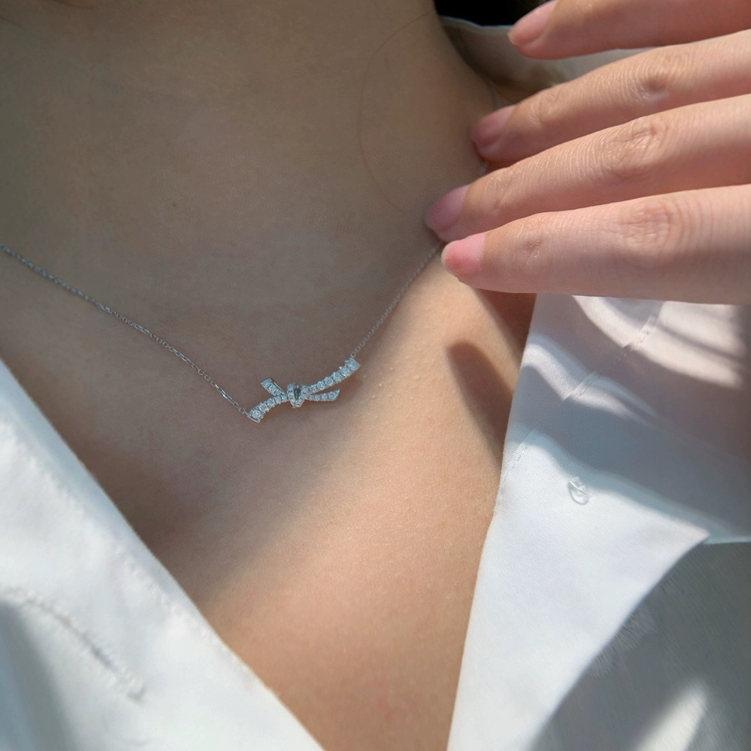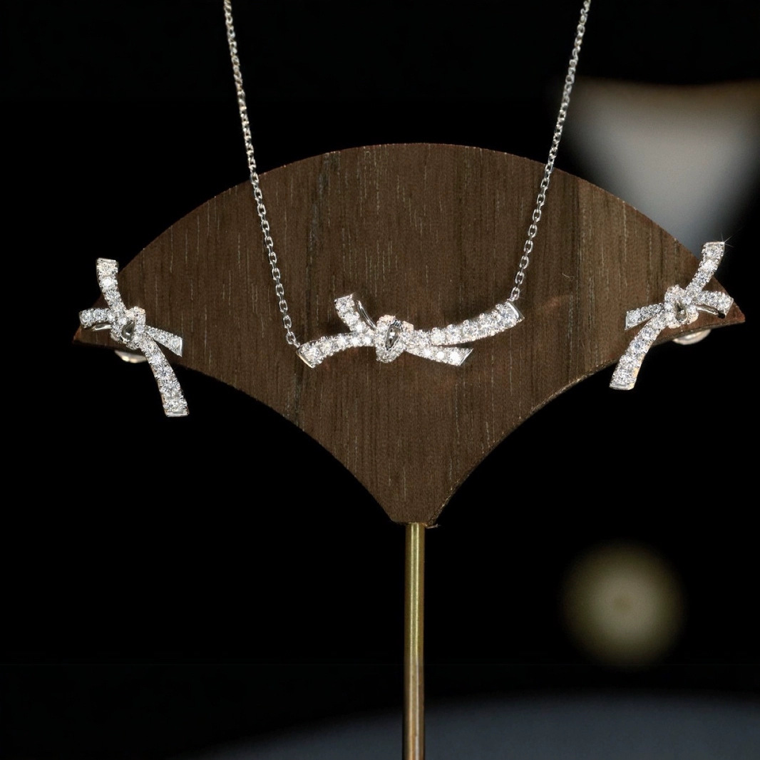 Корейский новый бант 18-каратный бриллиантовый набор ожерелья ins ветер премиум-класса легкий и роскошный дизайн ниши