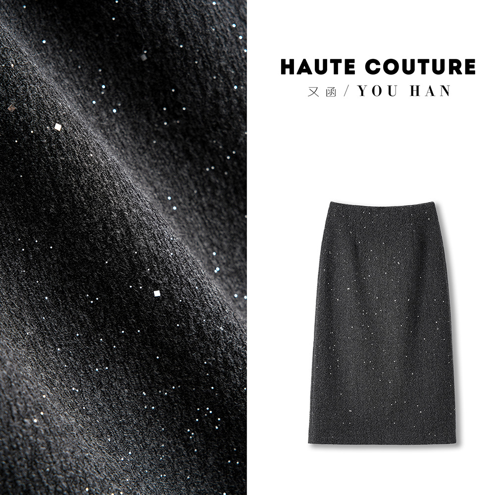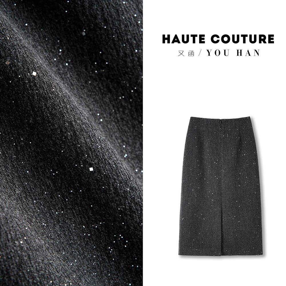 Новая осенне-зимняя юбка средней длины из шерсти с пайетками от Miaoxiaer для женщин, облегающая юбка из шерсти с пайетками, элегантная юбка