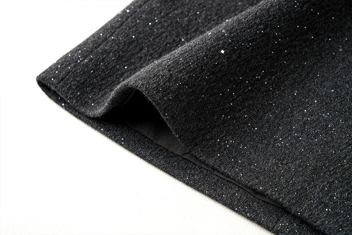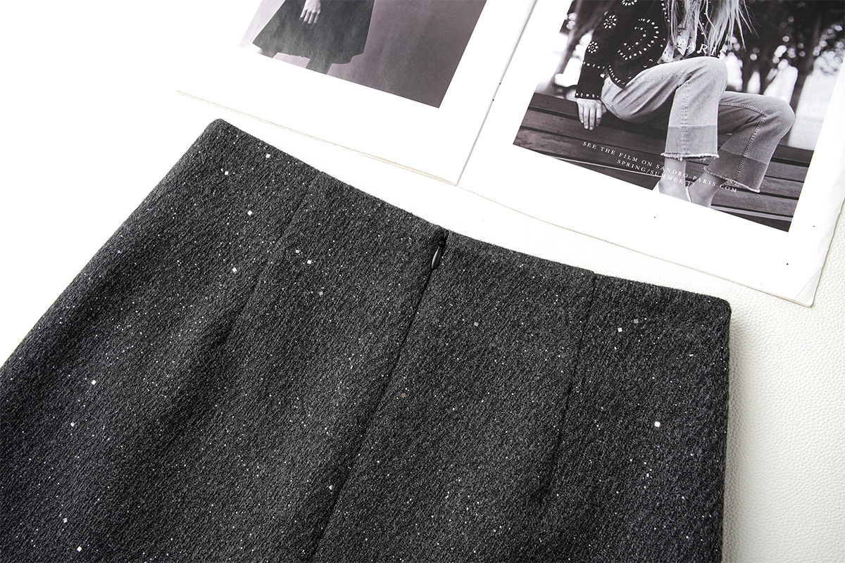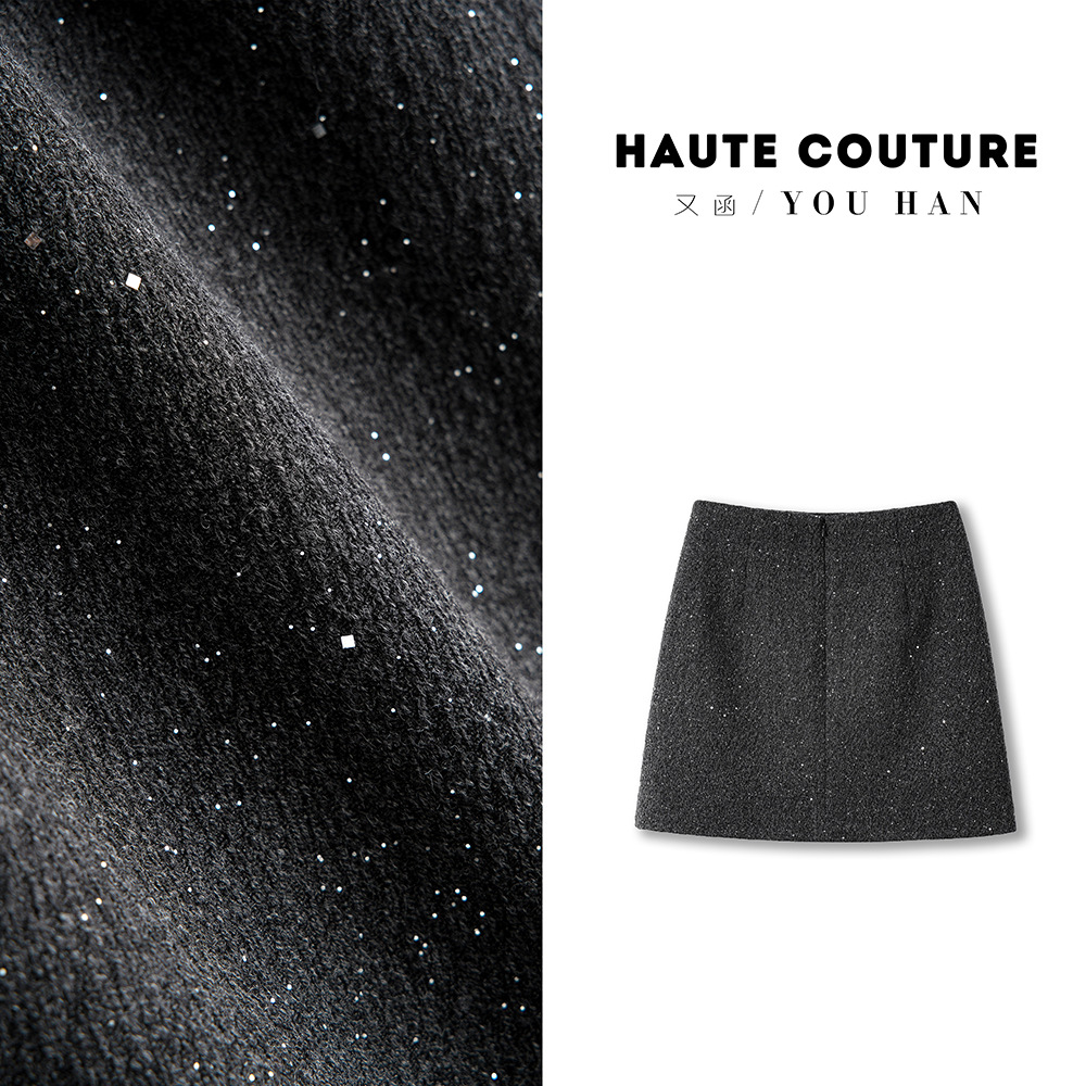 Осенне-зимняя короткая юбка из шерсти с пайетками для женщин, новинка 2025 года, А-силуэт, стройнящая, блестящая, из шерстяного материала, элегантная короткая юбка, хит продаж