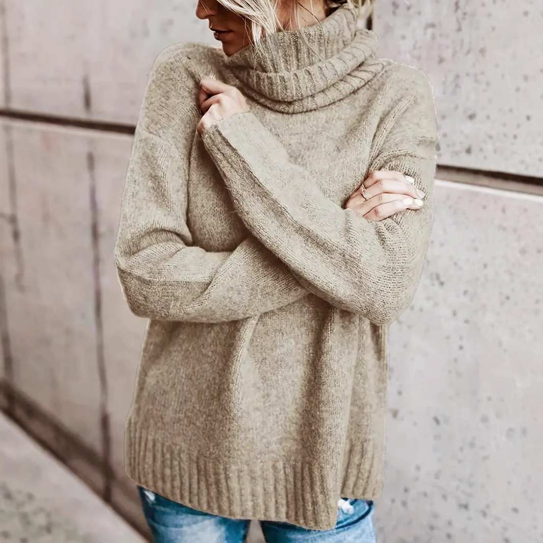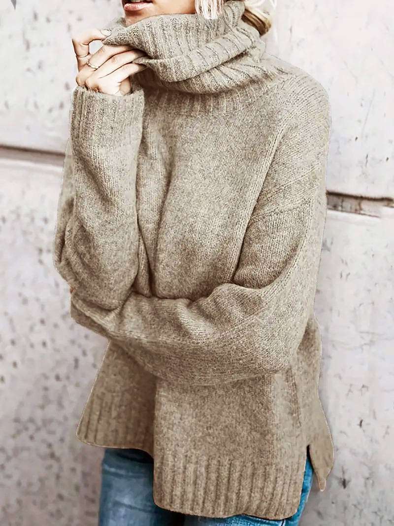 Европейский и американский Amazon с высоким воротником осенью и зимой ленивый свитер с длинными рукавами большой размер женский сплошной цвет элегантный повседневный свитер