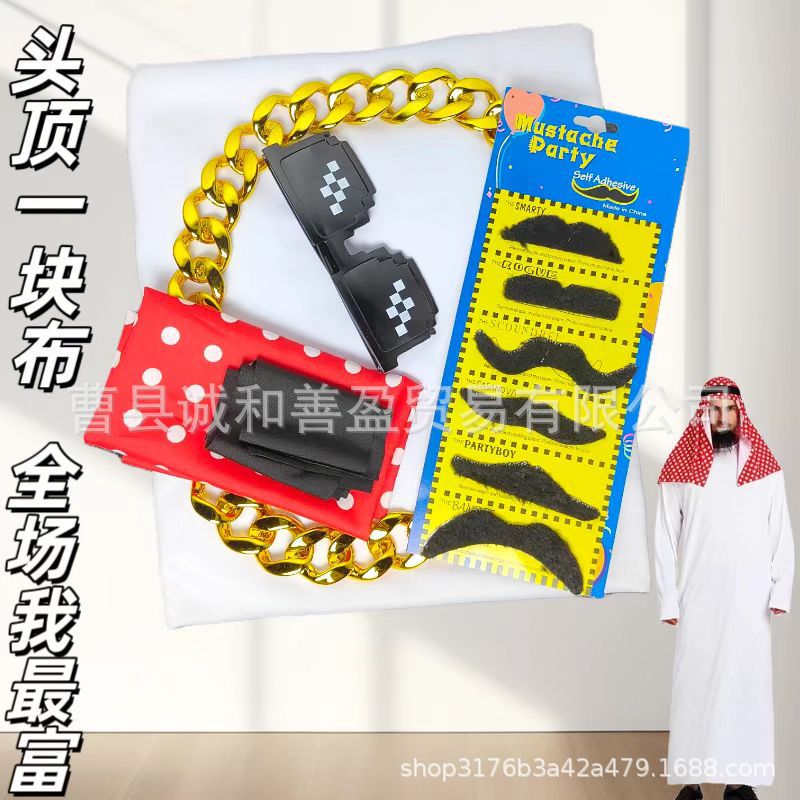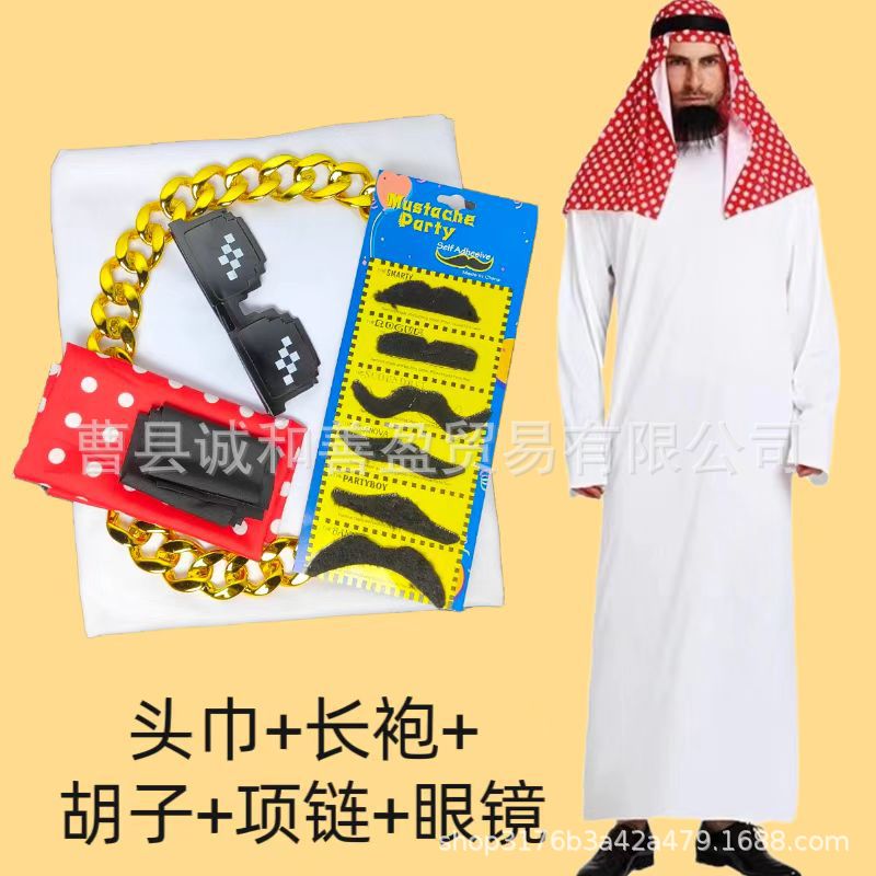 Комплект из трех предметов: богатая платка + халат + борода.; Набор из пяти предметов насыщенного платка + халат + борода + ожерелье + очки