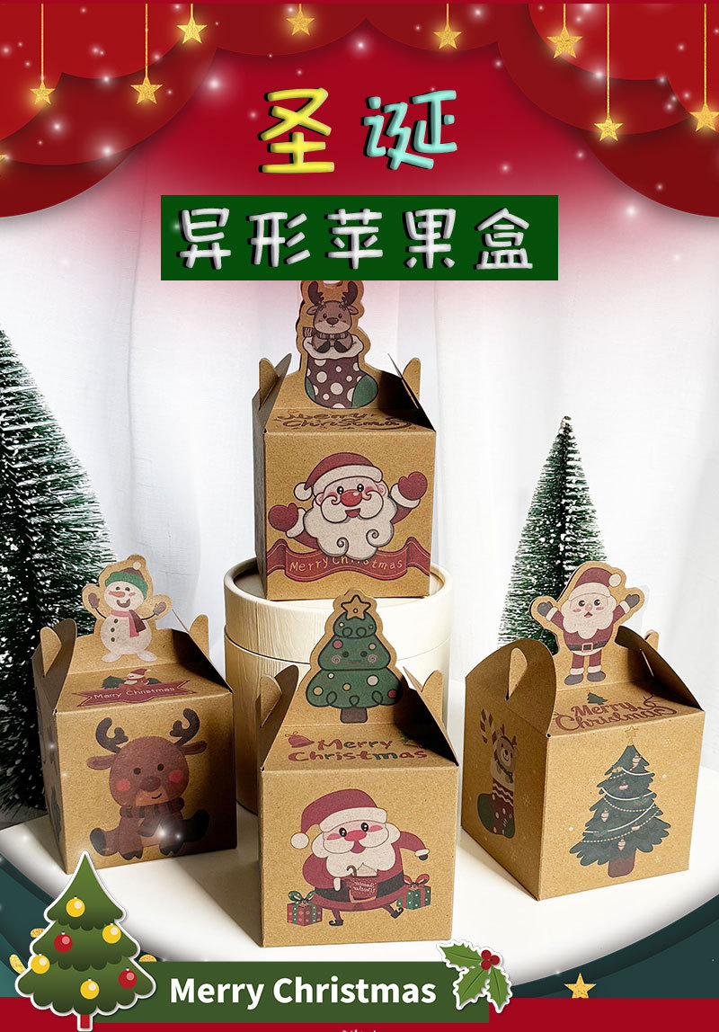 Рождественская яблочная коробка специальной формы 8,5*8,5*8,5 см; 4 шаблона смешанные отправляются случайным образом