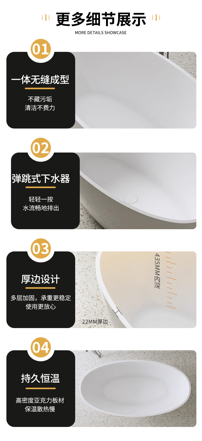 Овальная акриловая ванна для глубокого замачивания, отдельностоящая, для гостевых домов и отелей, оптовая продажа напрямую с завода для международных проектов