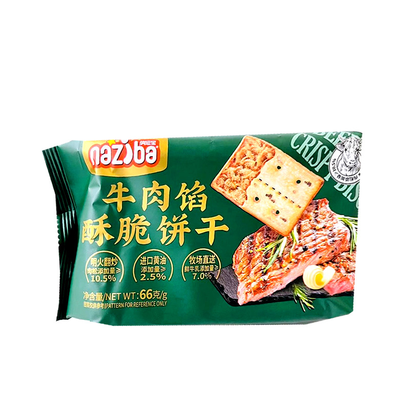 Nazibao черный высокогорный ячмень с высоким содержанием клетчатки и говяжьим фаршем печенье 66 г; Печенье Назибао сливовое, овощное и мясное 66г; Печенье с начинкой из говядины Назибао 66г