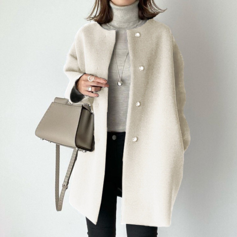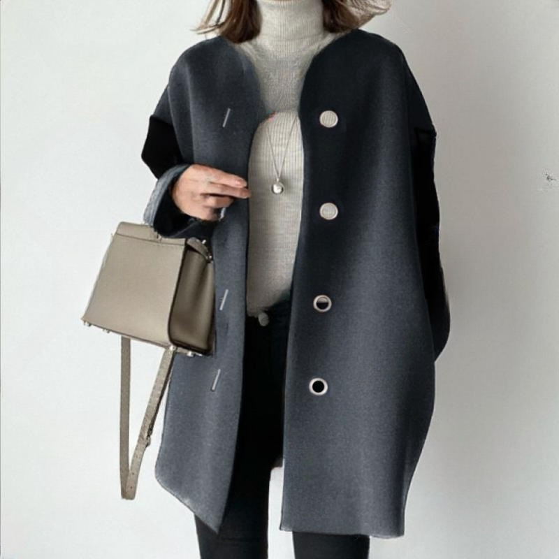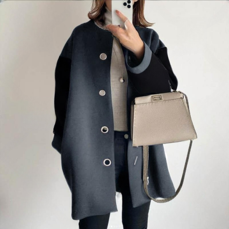 В наличии высококачественное свободное женское пальто прямого кроя в японском стиле, осень-зима 2024, элегантная однотонная простая шерстяная куртка-топ