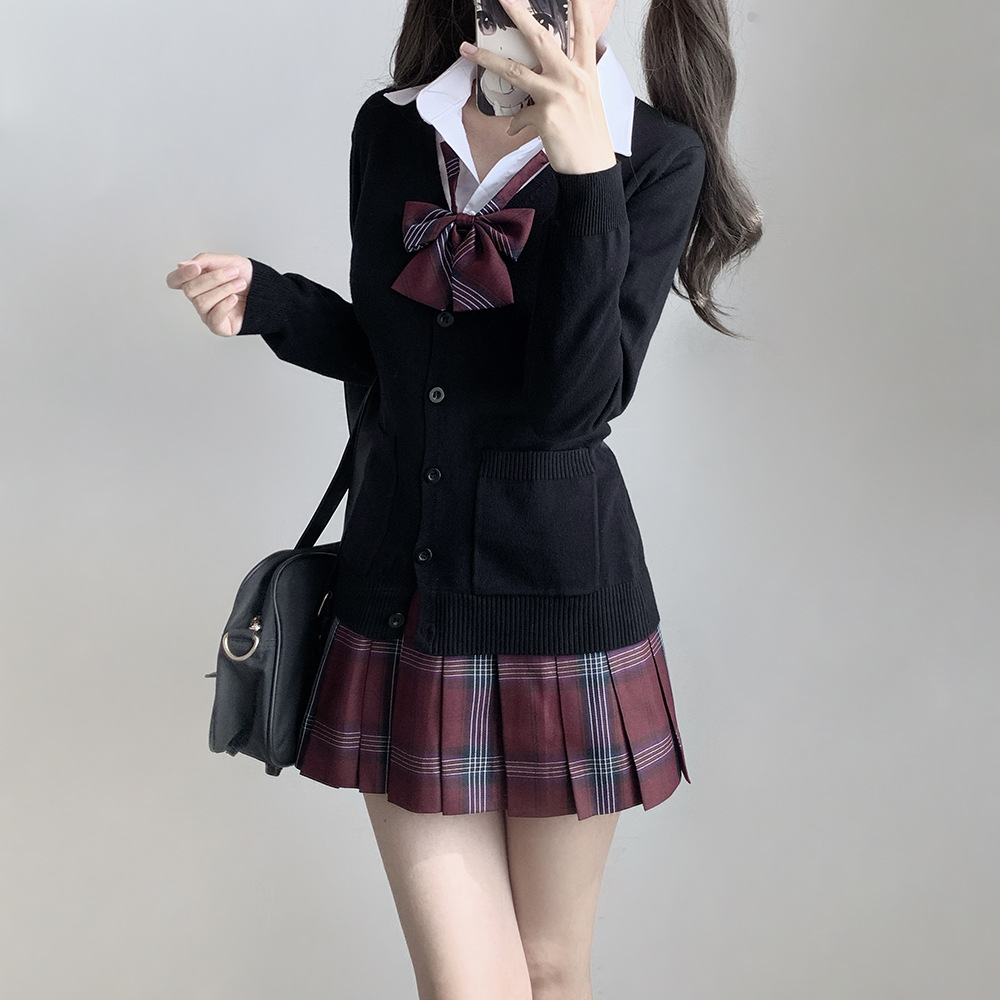 Оригинальный jk кардиган свитер сплошной цвет японская форма школа стиль вязаный свитер с длинными рукавами для девочек осень