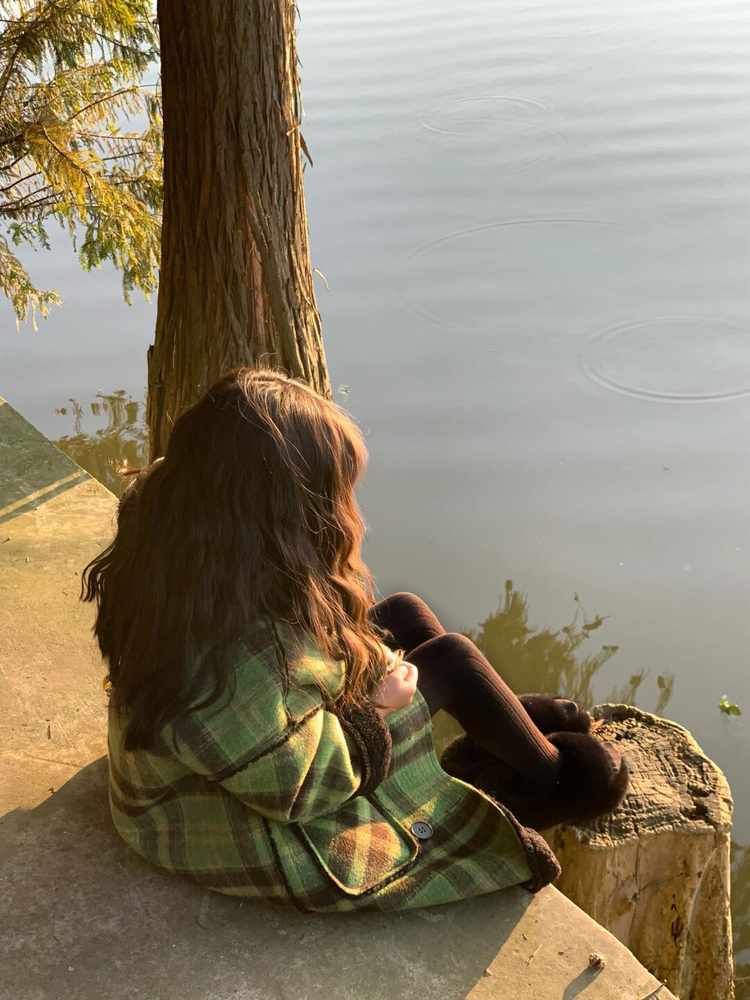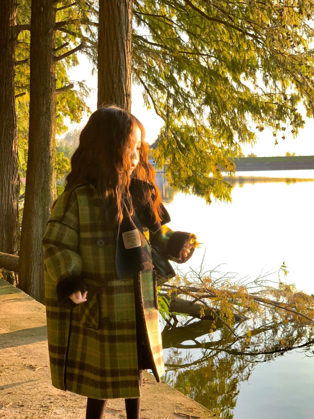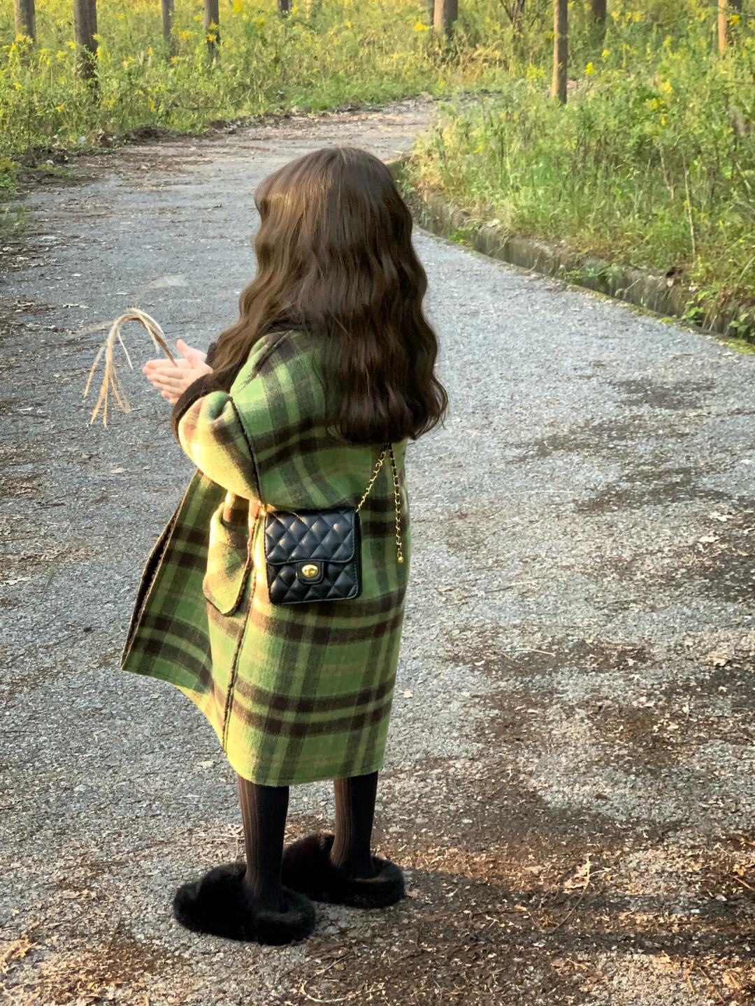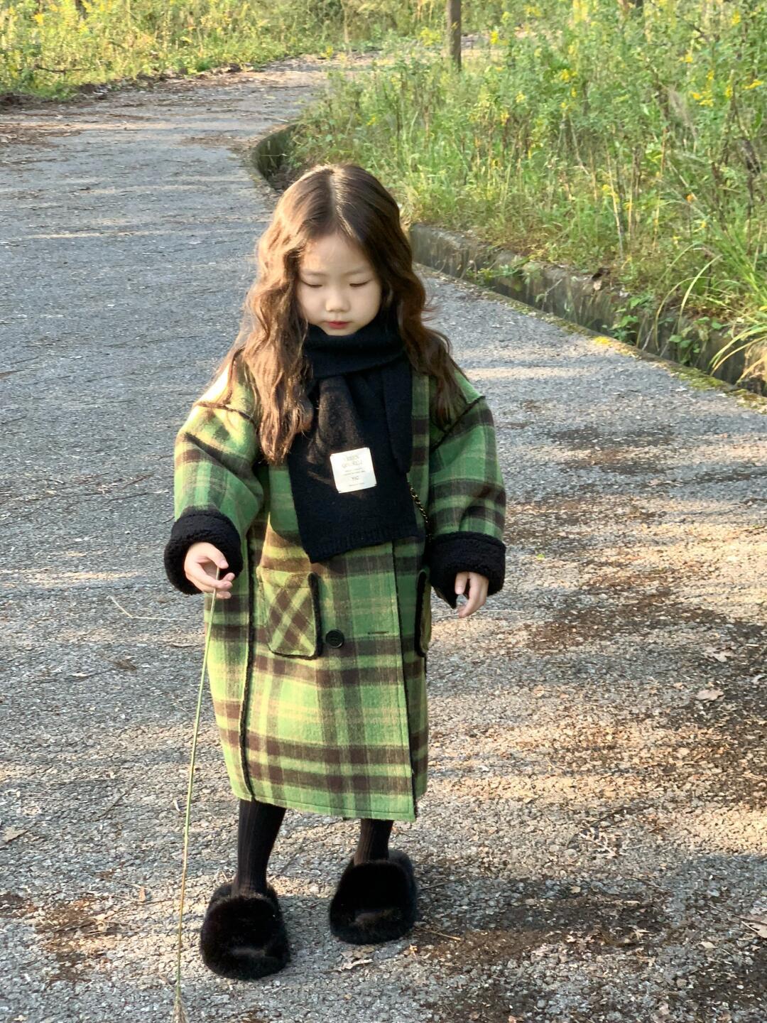 2024 девушки осень и зима утолщенные, теплые двубортные зеленые клетчатые шерстяные пальто средней и длинной шерстяные пальто