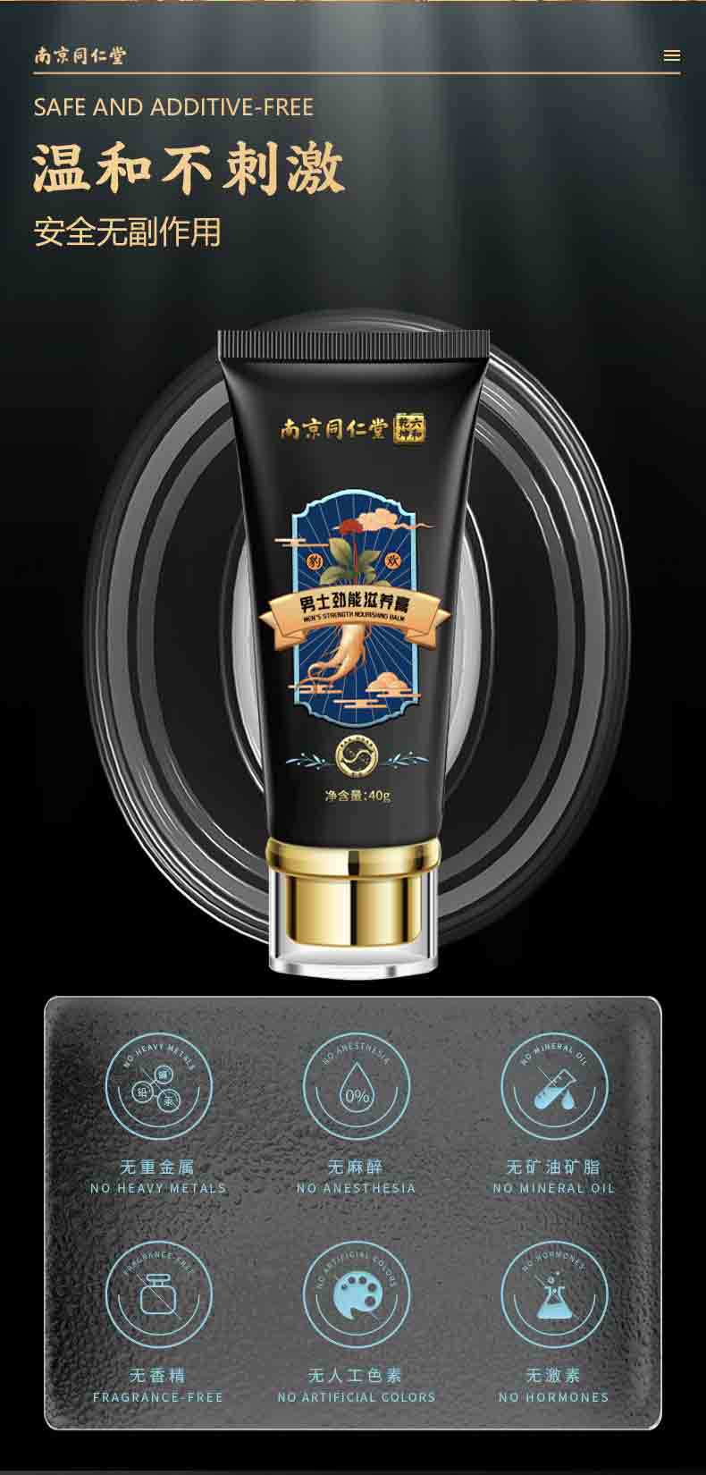 Мужской массажный крем Nanjing Tongrentang, энергетический питательный крем, крем для восстановления интимных зон, эссенция женьшеня, восстанавливающее масло-эссенция.