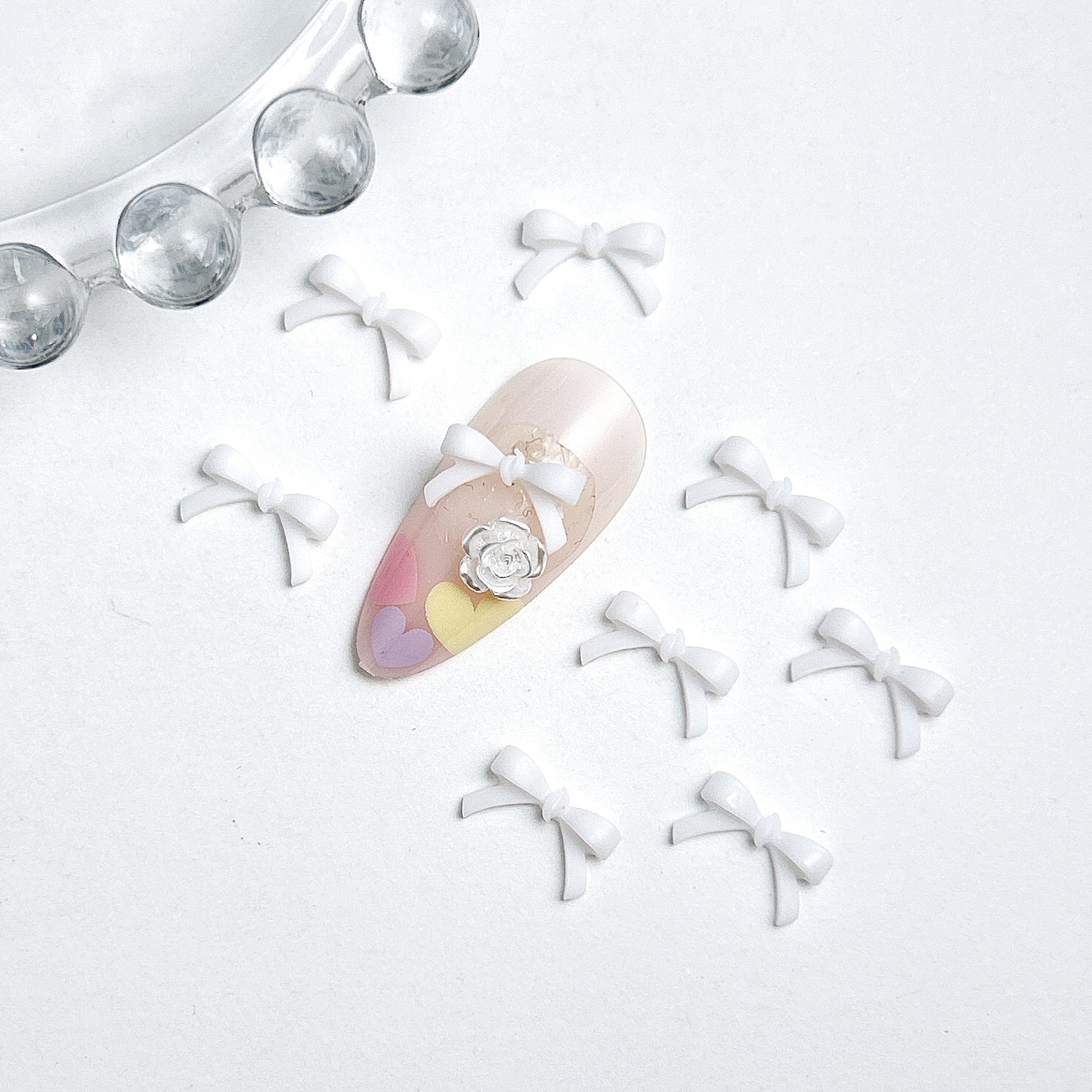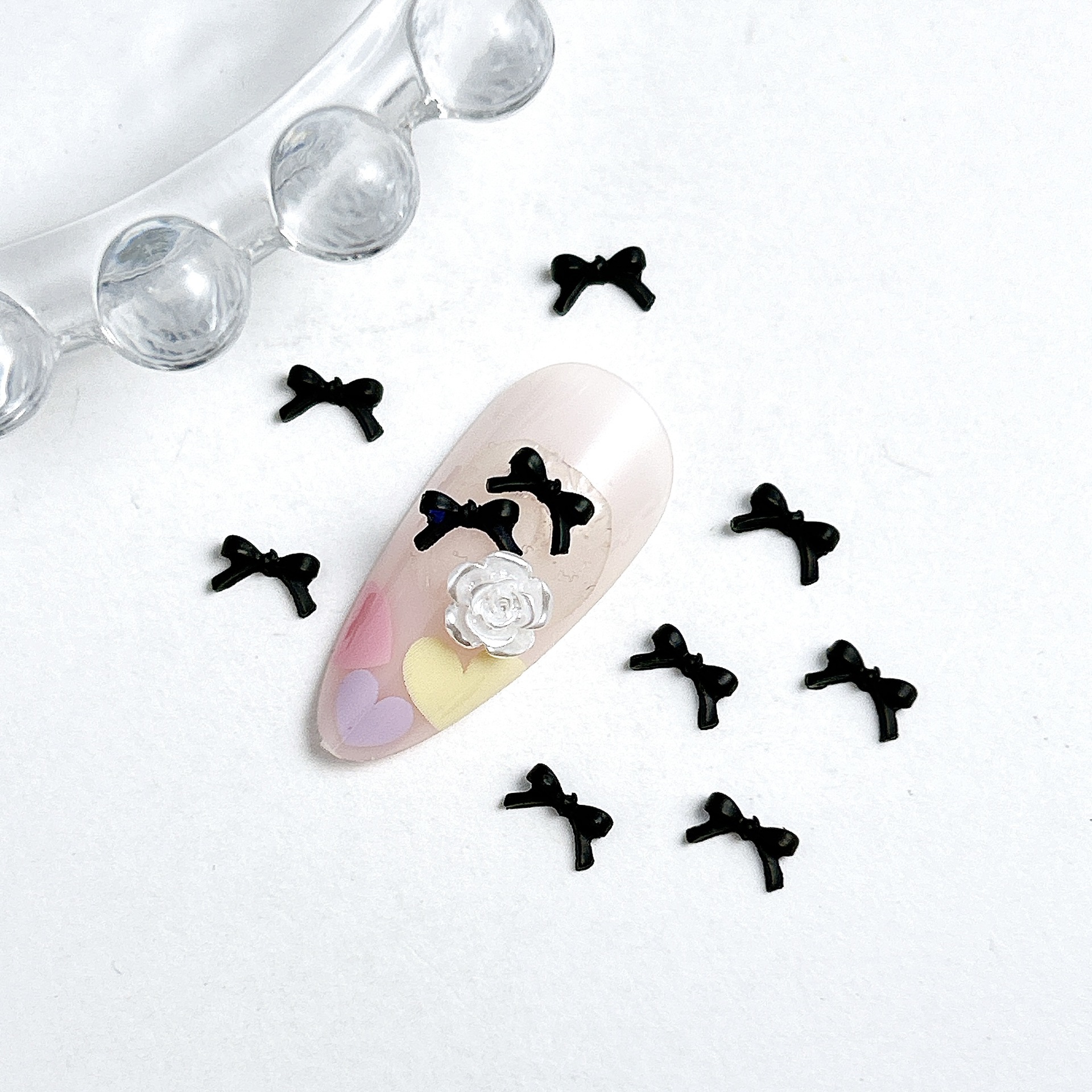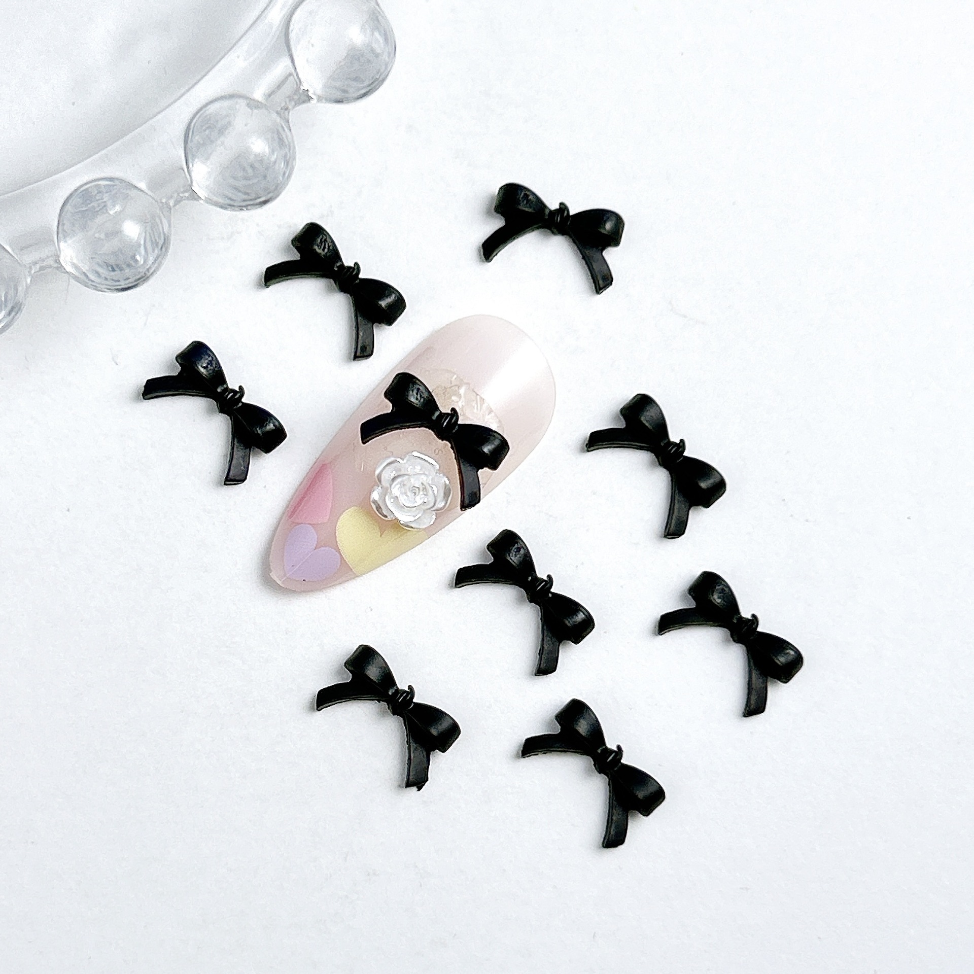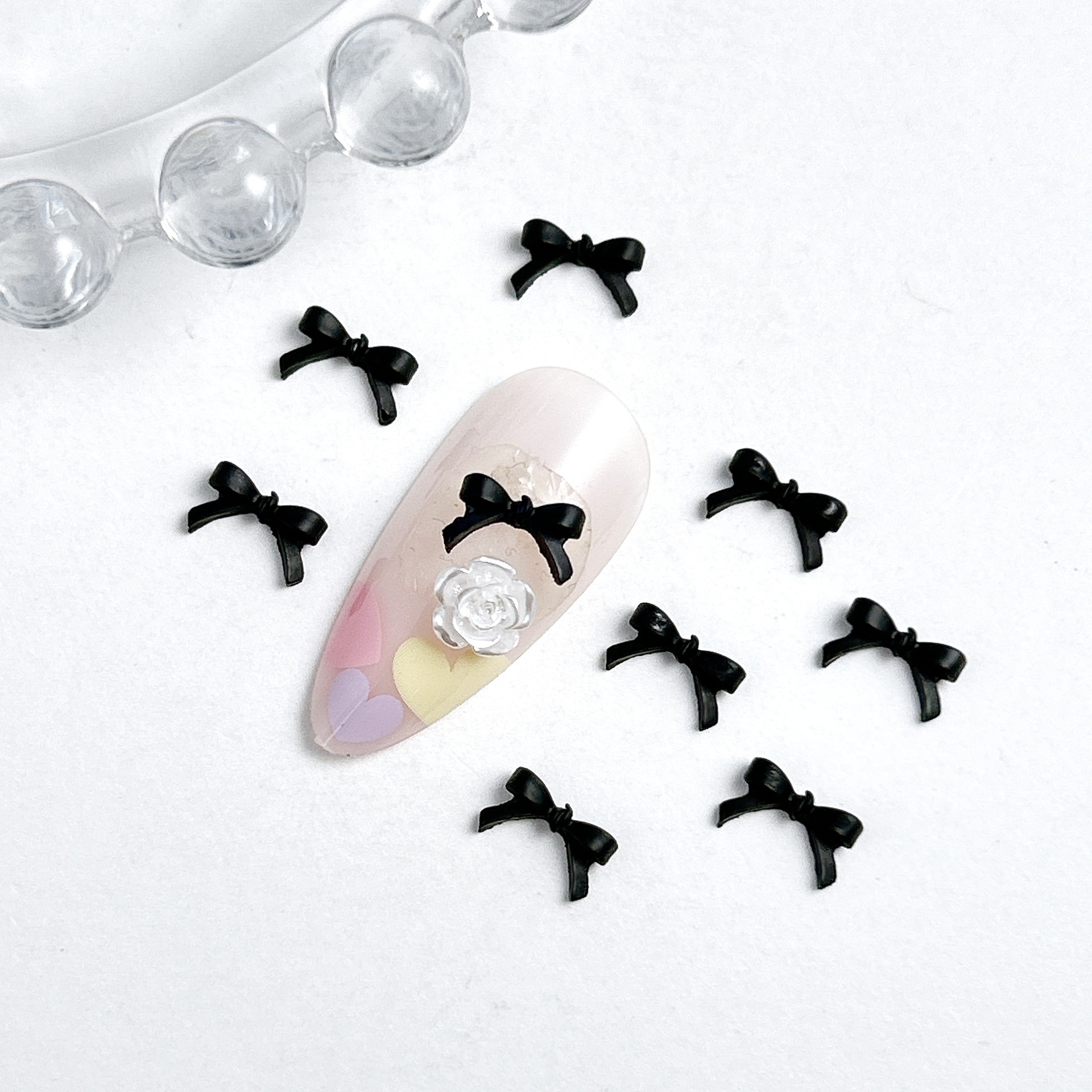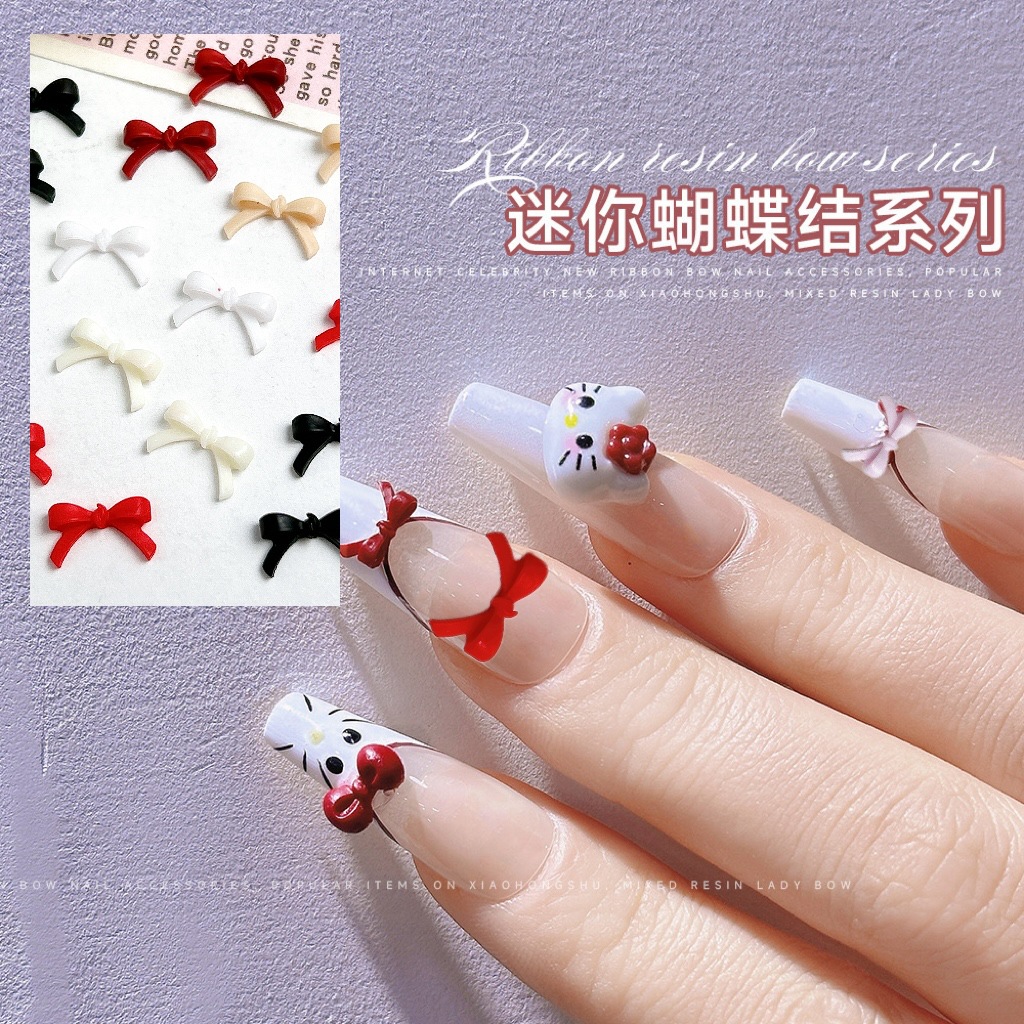 Взрывной мини-маникюрный бант украшения смешанные большие и маленькие минималистские черные белые смолы для ношения аксессуаров для ногтей оптом