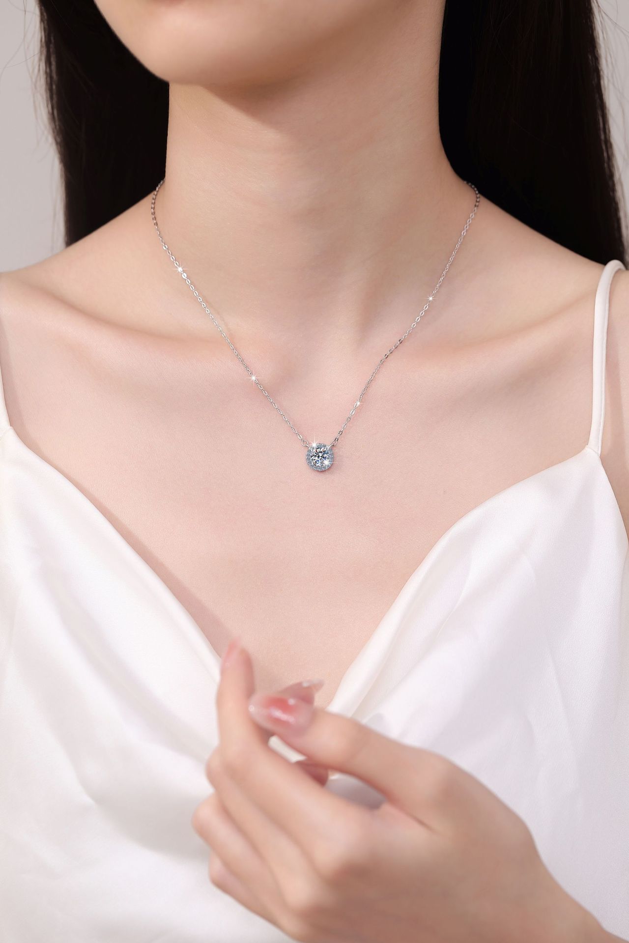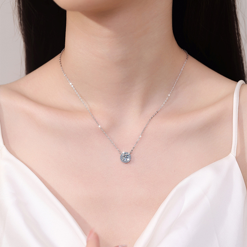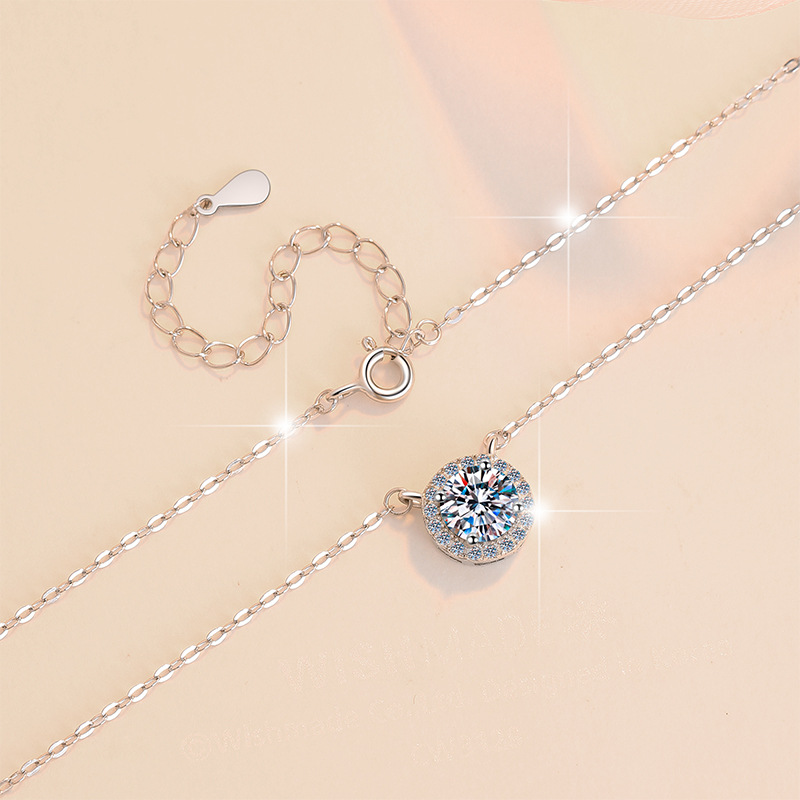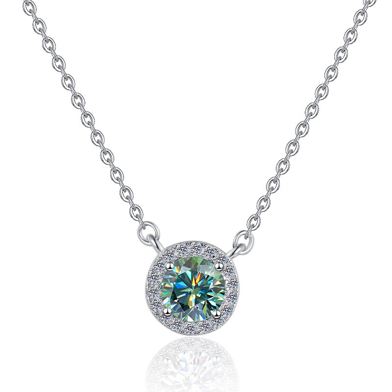 Европейско-американский оптовый поставщик: модное и универсальное ожерелье из стерлингового серебра S925 с круглым разноцветным муассанитом GRA 1 карат для ношения на ключицу