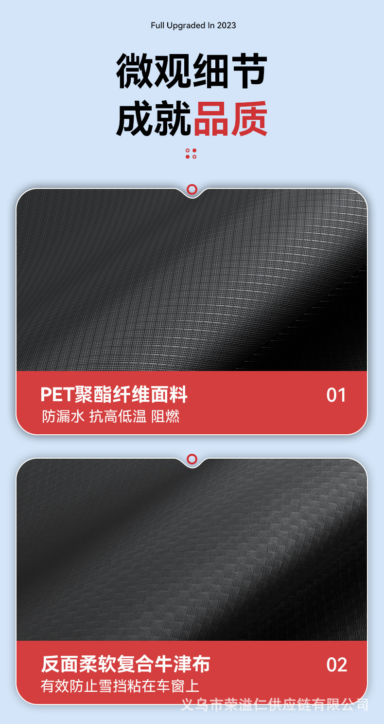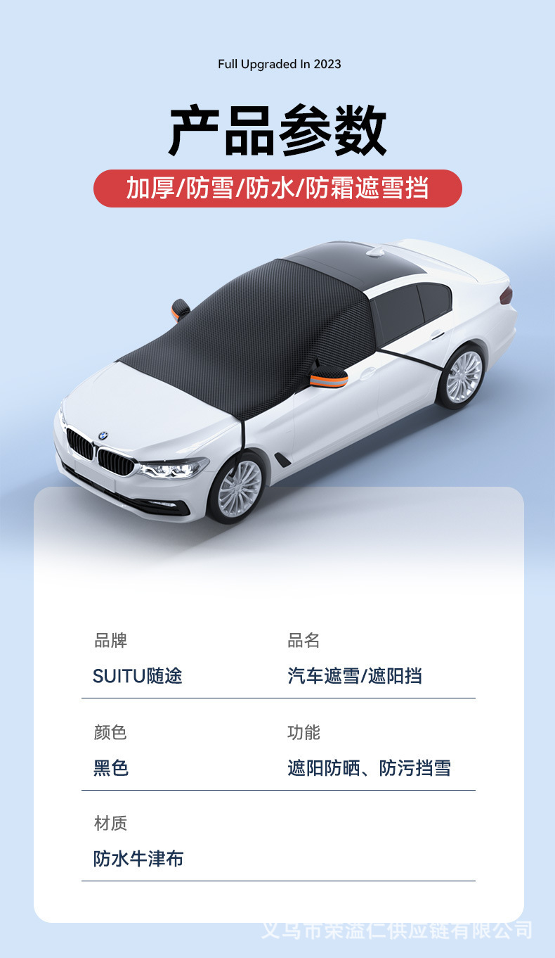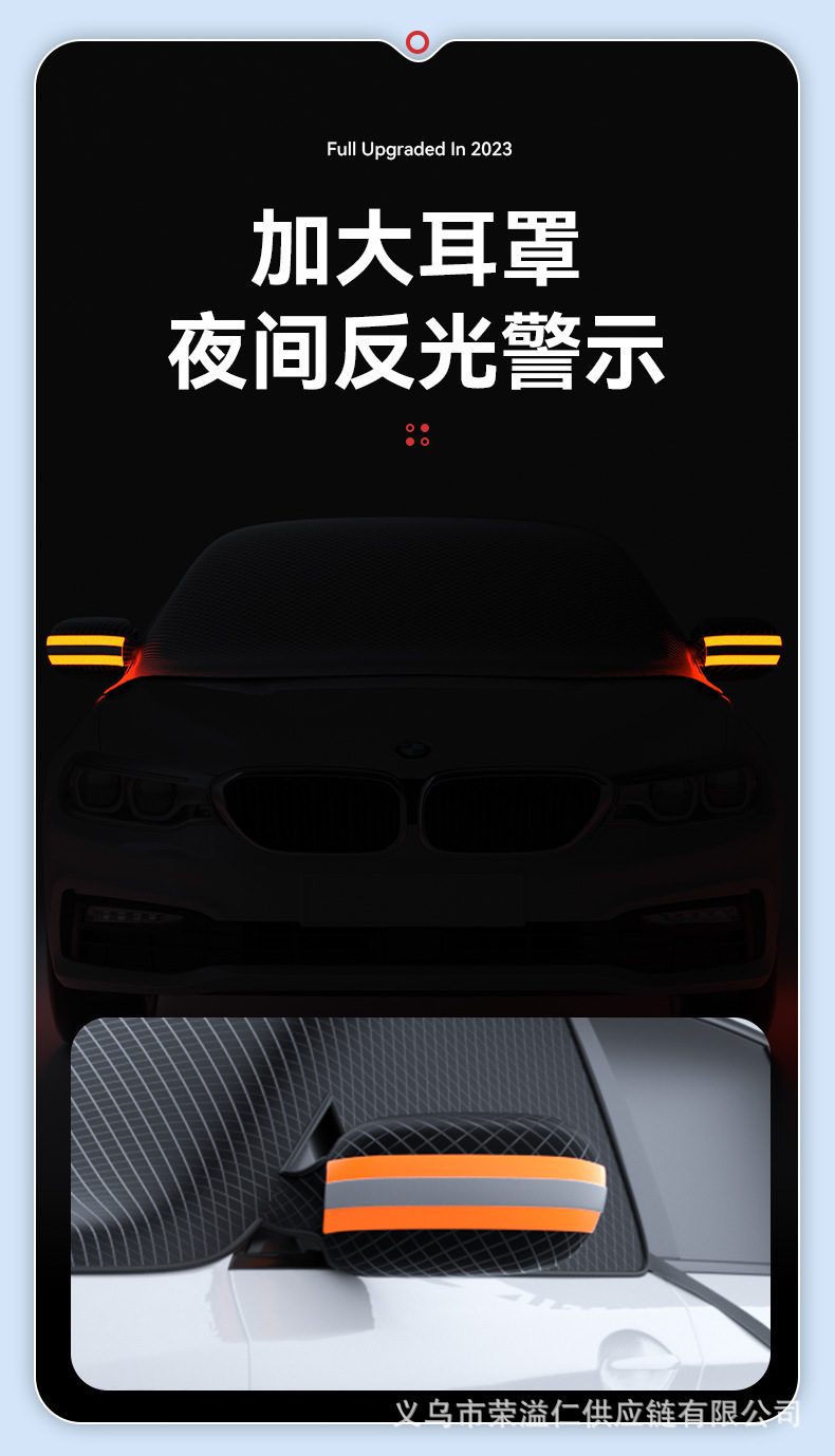 1、牛津布材质,不伤车漆,防晒、隔热、防雨雪、防风尘、防划痕、抗拉力强。