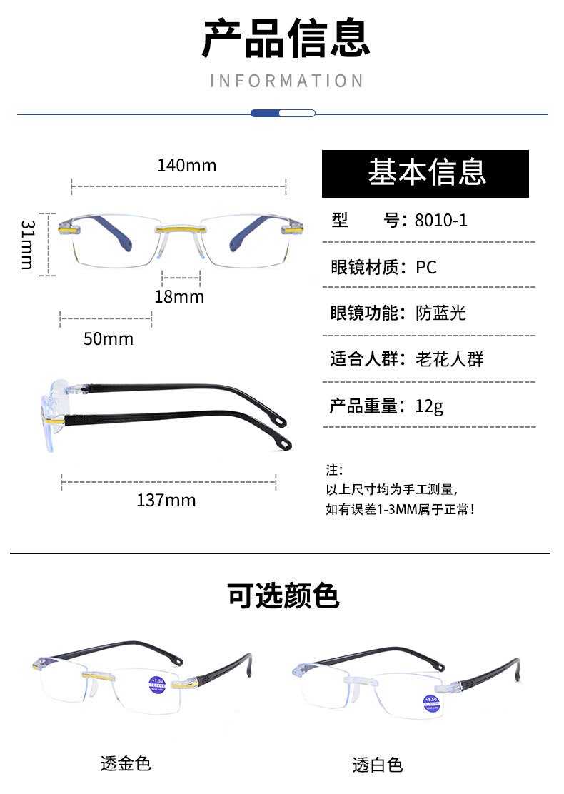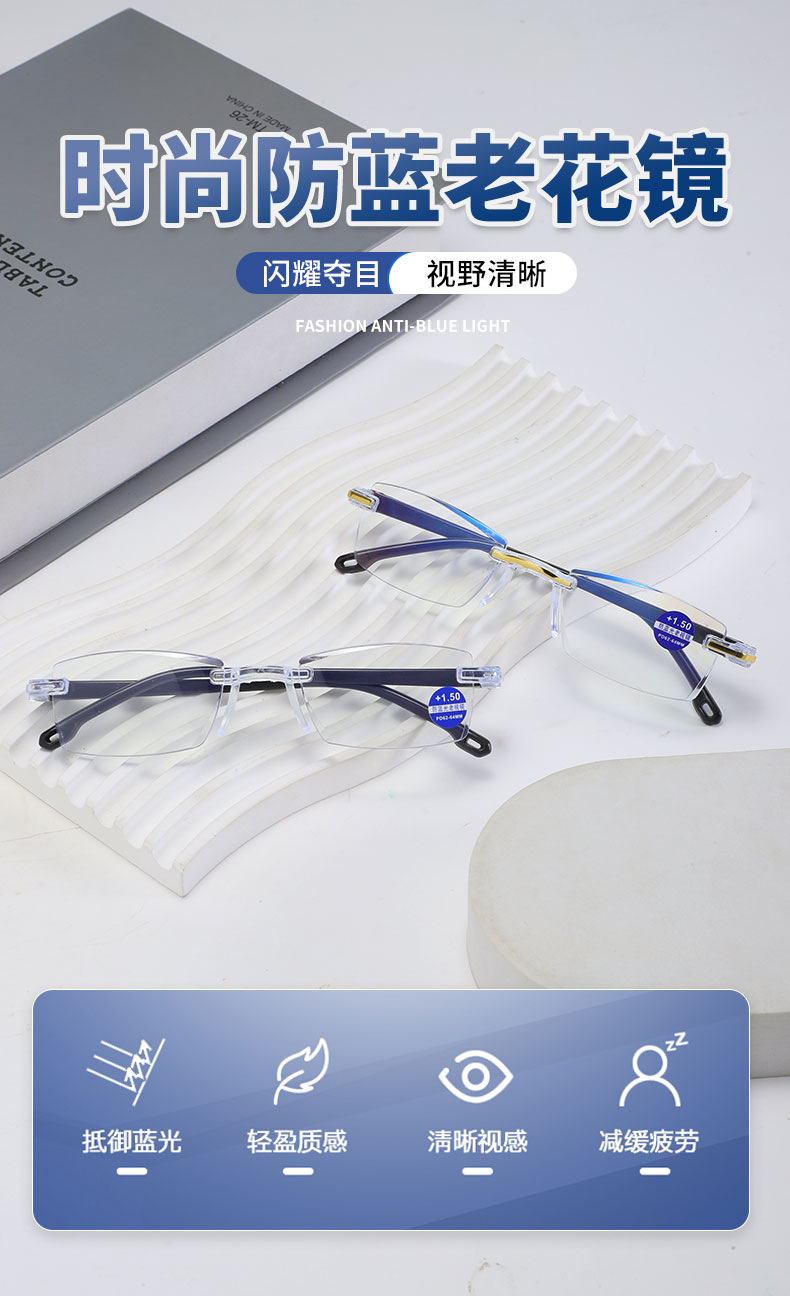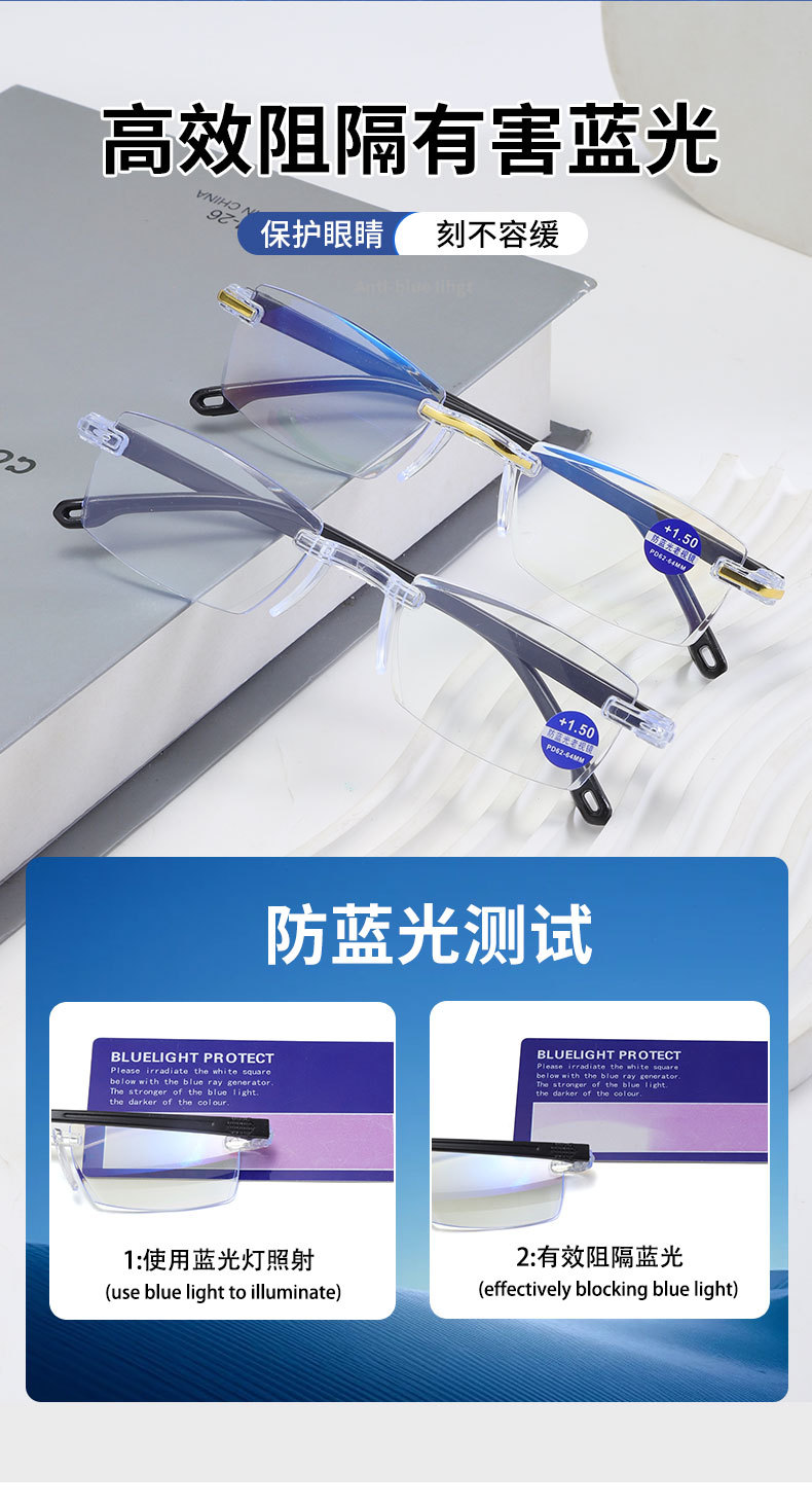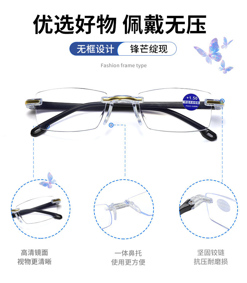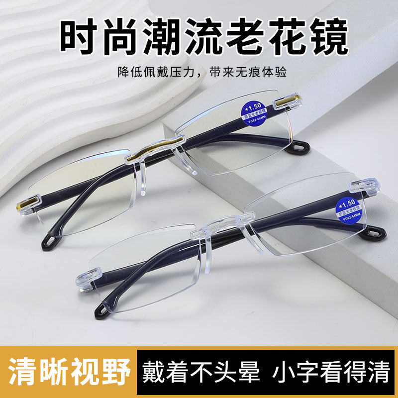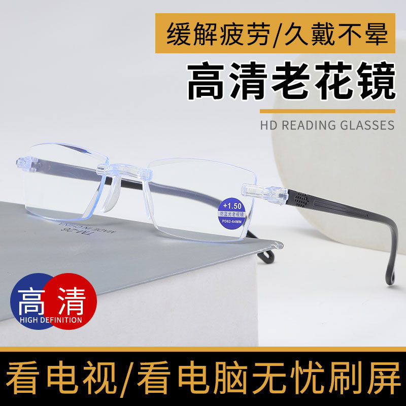 Безрамочные очки для чтения высокой четкости с защитой от синего света, новый стиль, бегущий по уличному киоску, очки для чтения, очки для чтения для пожилых людей, оптовая продажа