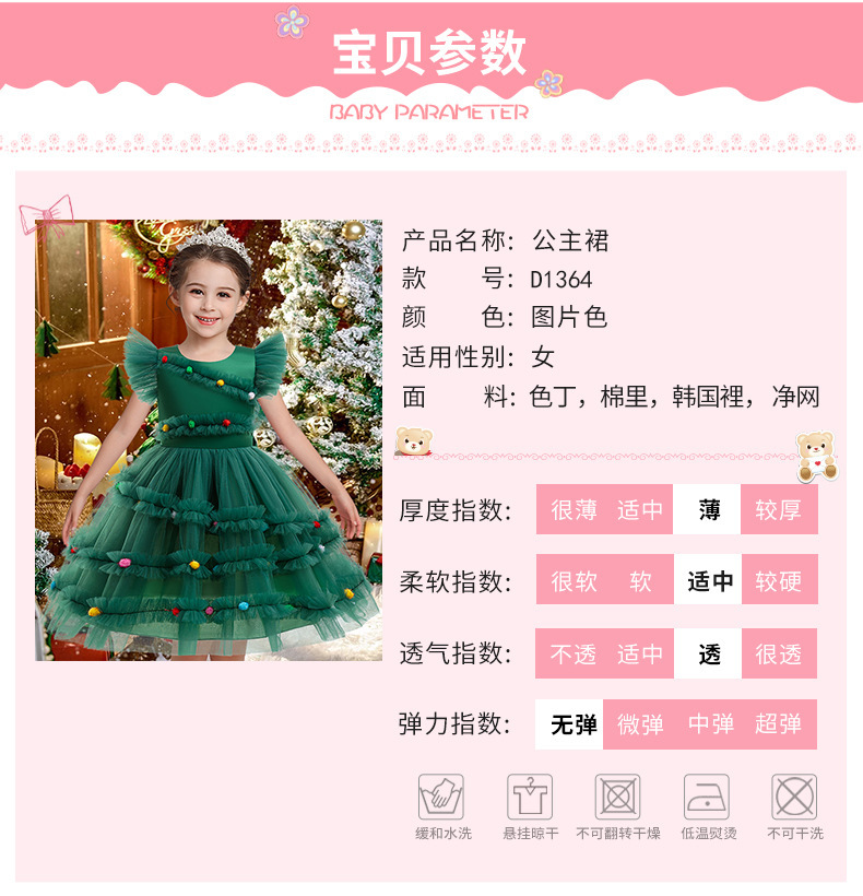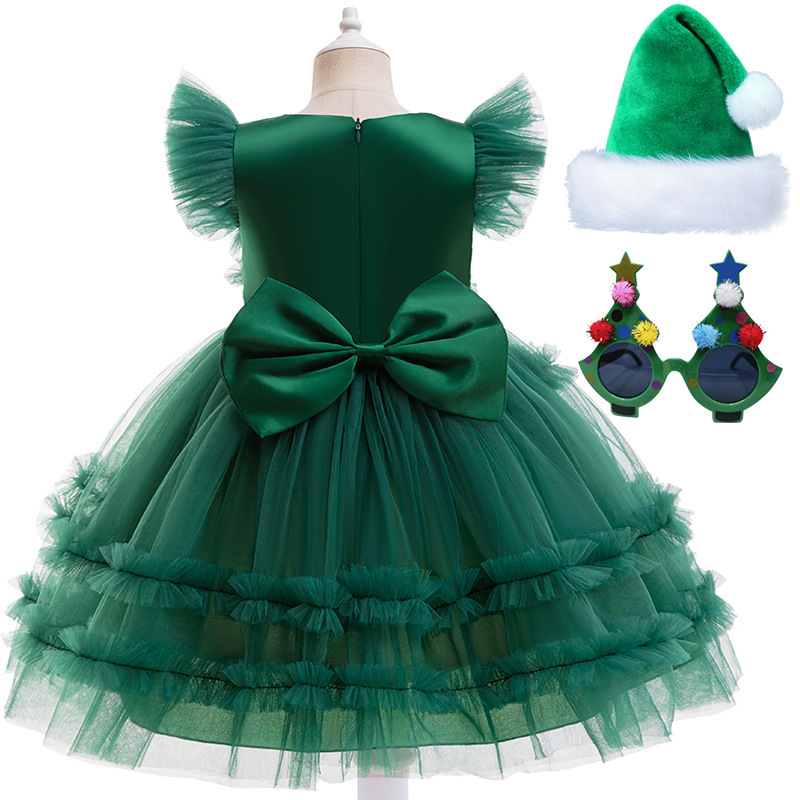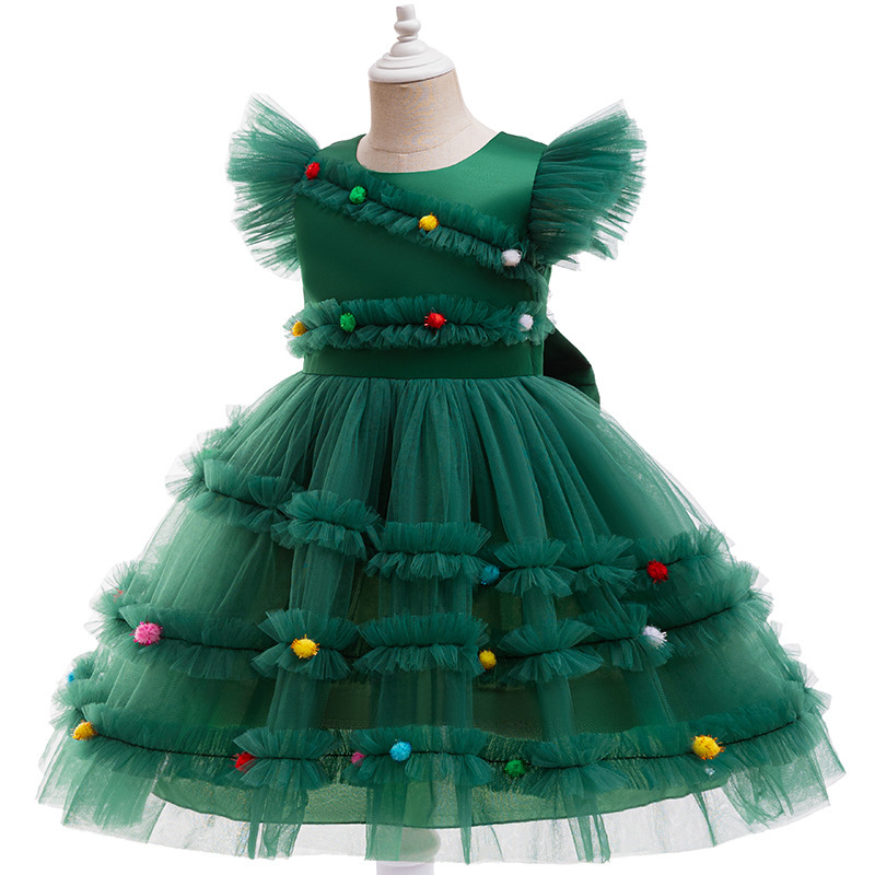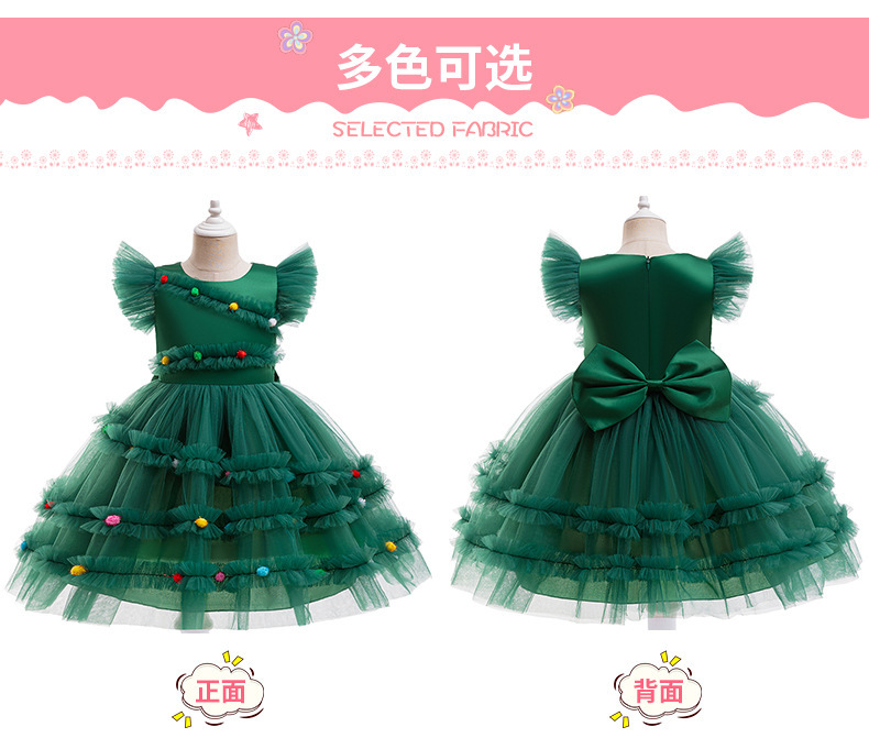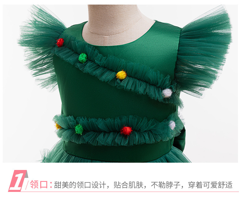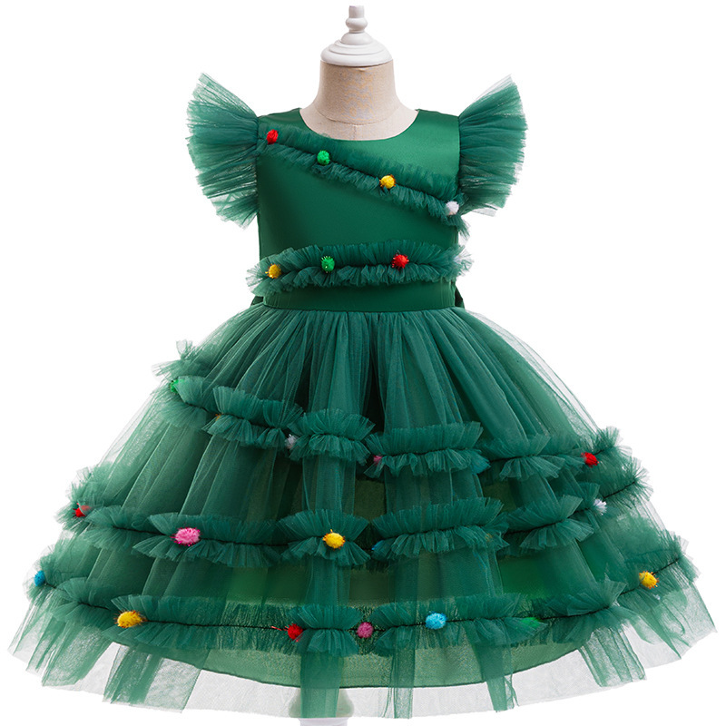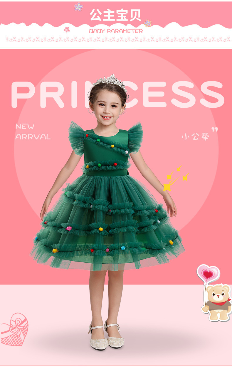 2024 Рождественская рождественская елка детская одежда трансграничная внешняя торговля девушка платье для детей день рождения платье зеленое платье