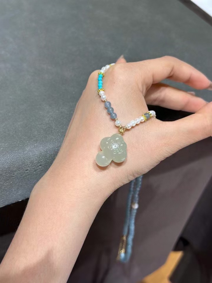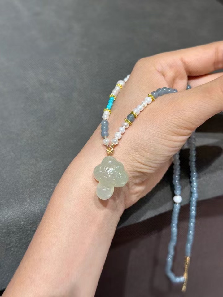 18k金镶嵌 和田玉 花开富贵➕翡翠链子