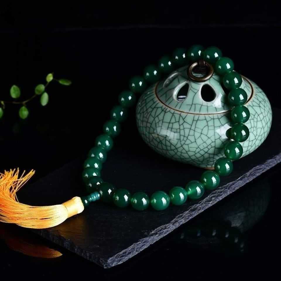 Природный зеленый агат Зеленая Тарица 27 ручных чётек Будды
