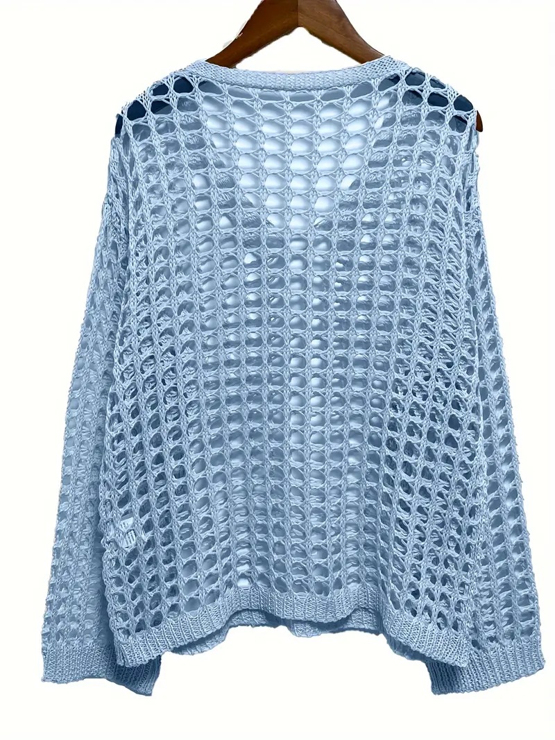 Новый Amazon Европа и США трансграничное свободное повседневное дикое полое с длинными рукавами большой размер женский вязаный свитер