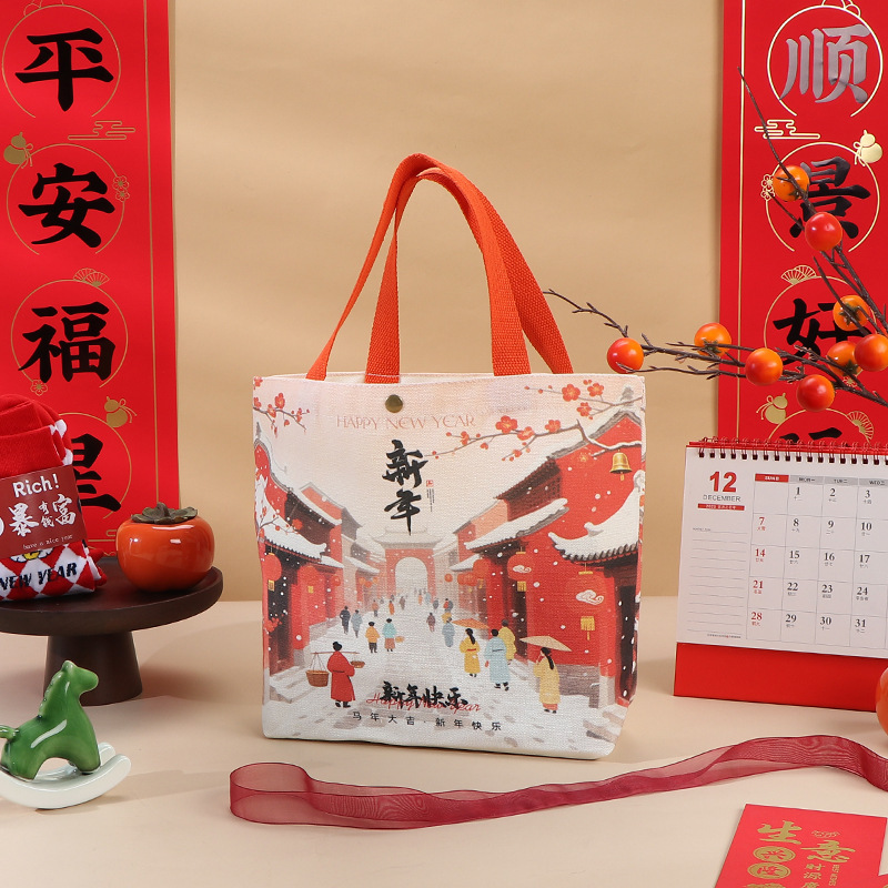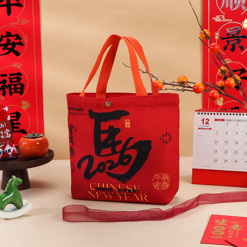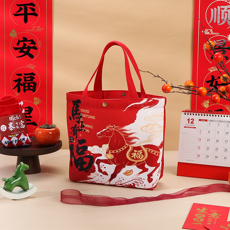 Подарочный пакет на Новый год 2026 года (Год Лошади), холщовая сумка «С Новым годом», удачливая подарочная упаковка