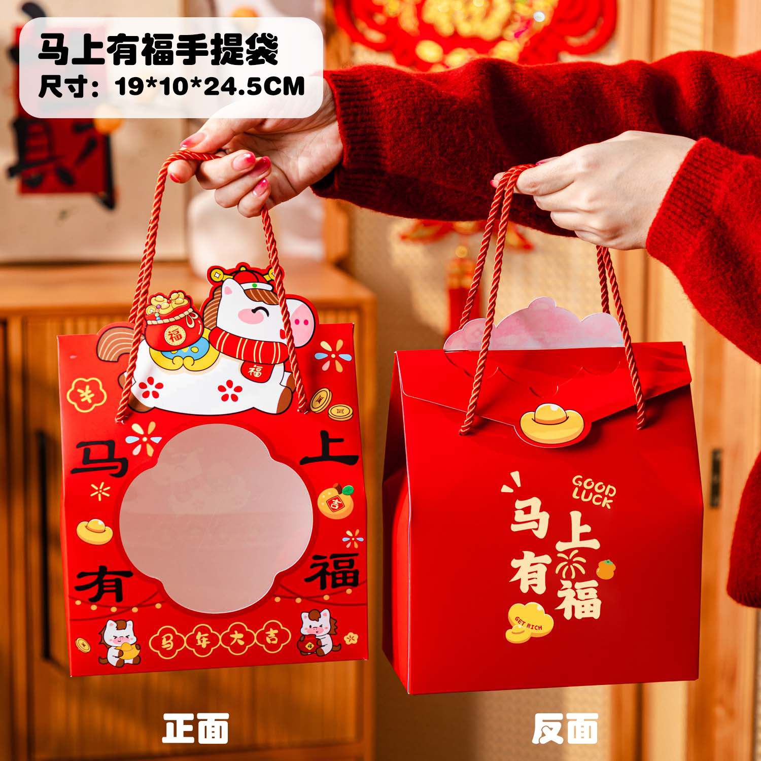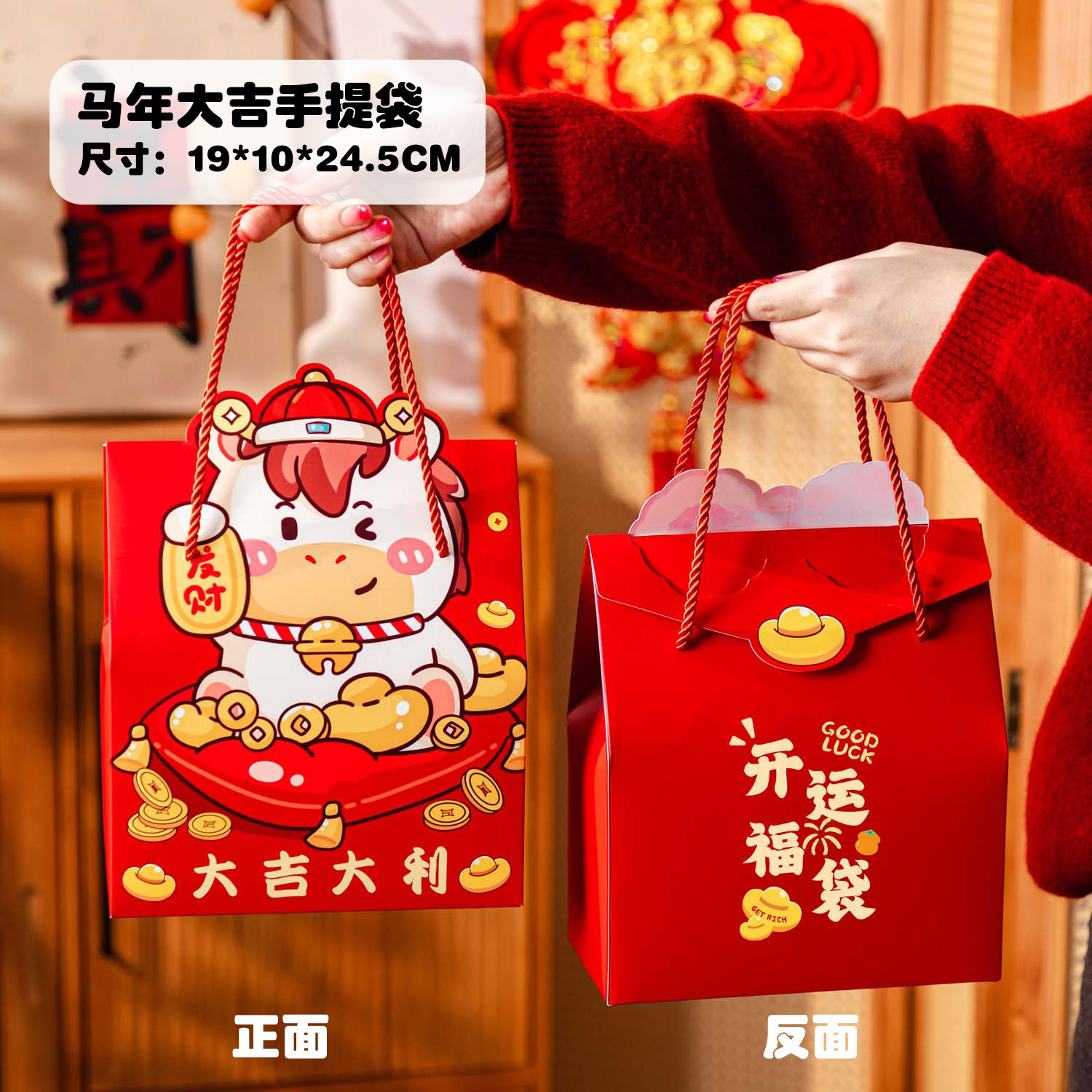 Новогодняя подарочная коробка 2026 для детского сада, коробка-тоут к Китайскому Новому году (Год Лошади), пустая коробка для конфет и закусок на ежегодное собрание