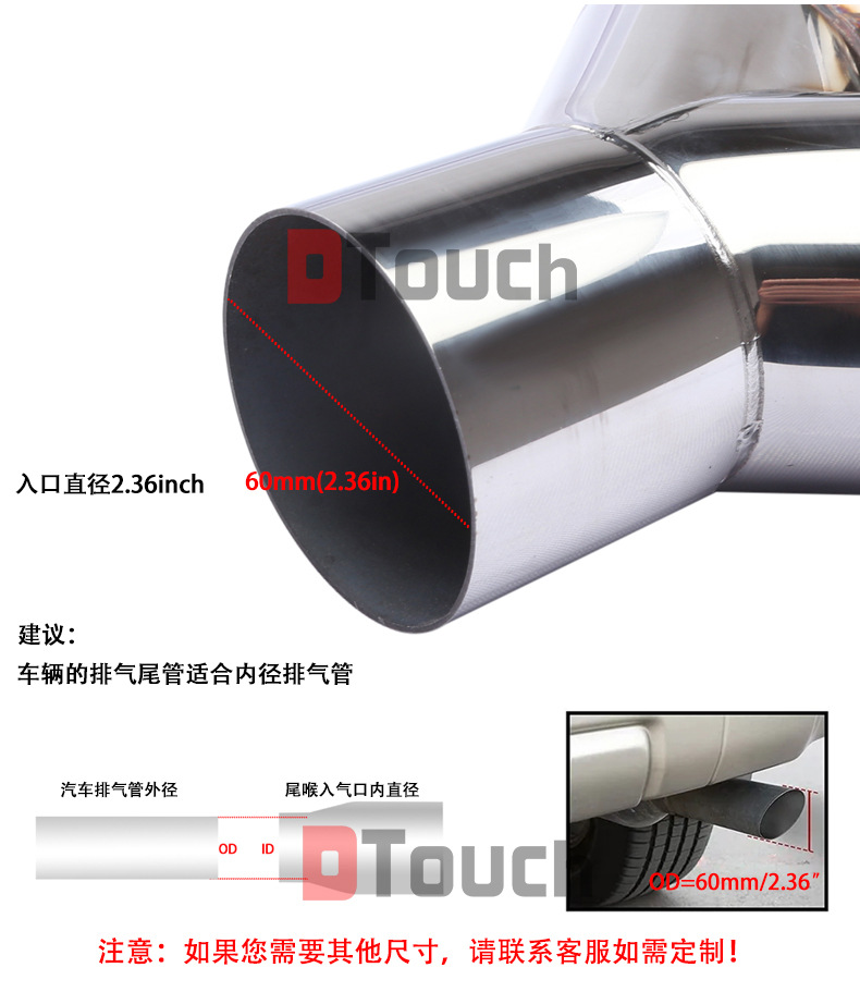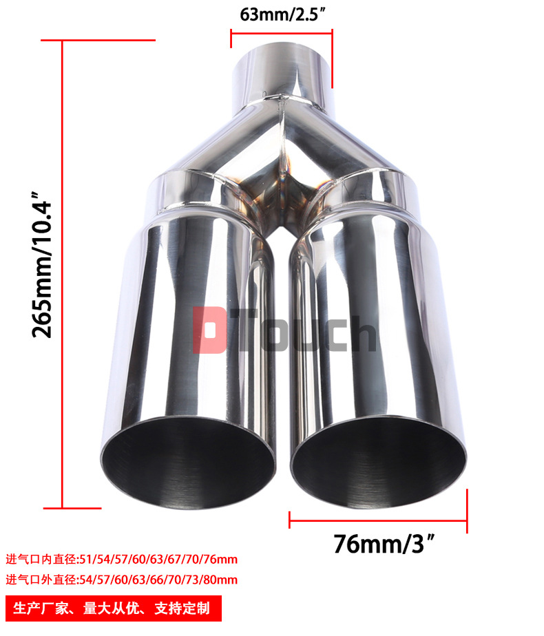 【产品尺寸】:进气63mm,出口76mm/89mm/102mm(其他尺寸可定制)