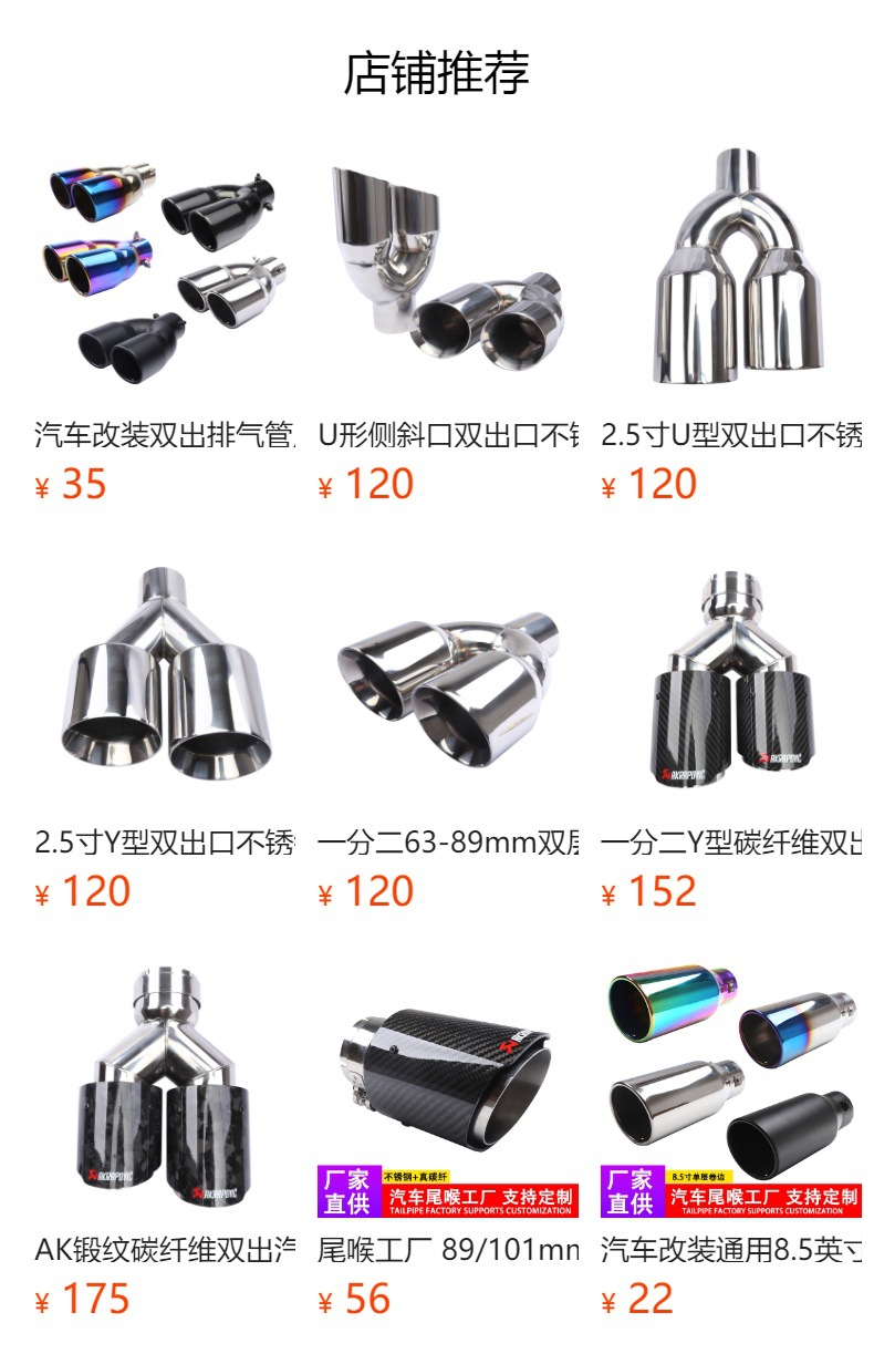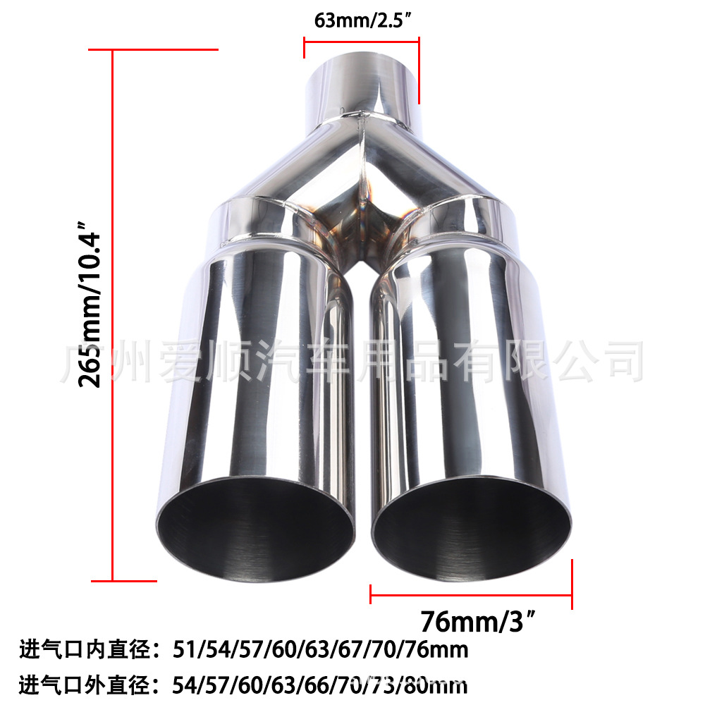 不锈钢尾喉厂家批发 63-76mmY型单层双出不锈钢尾喉一出二汽车改装双尾喉