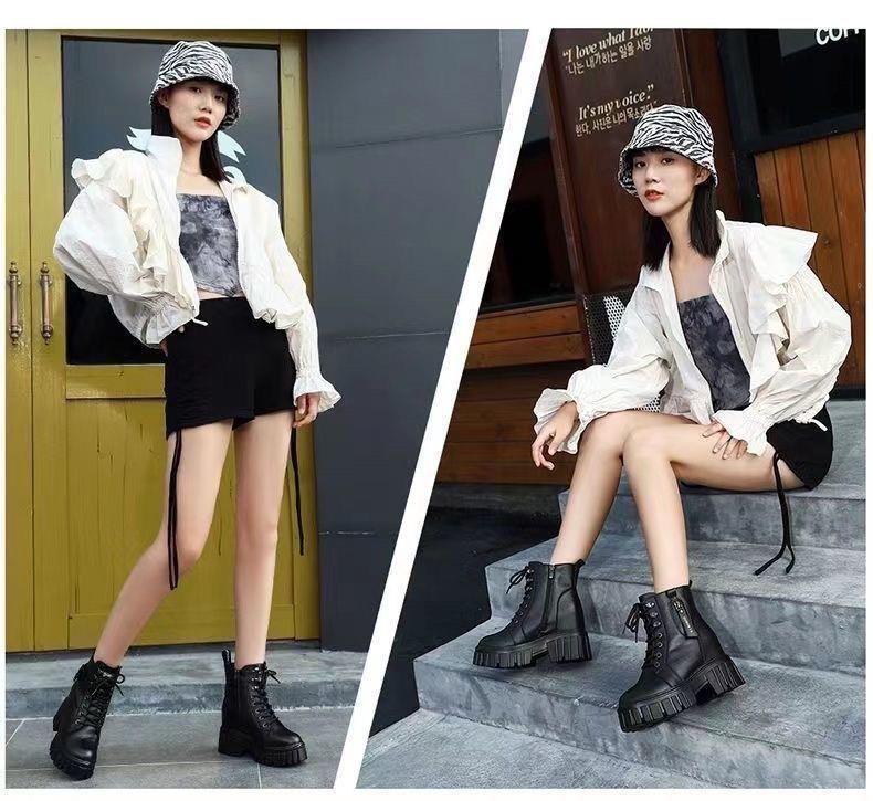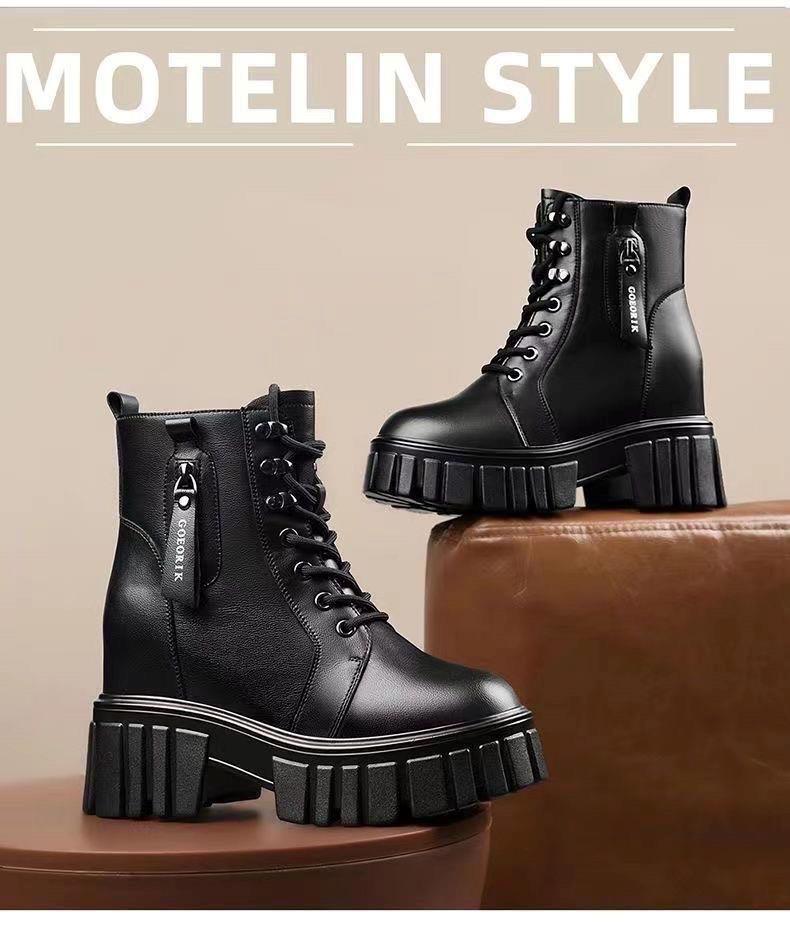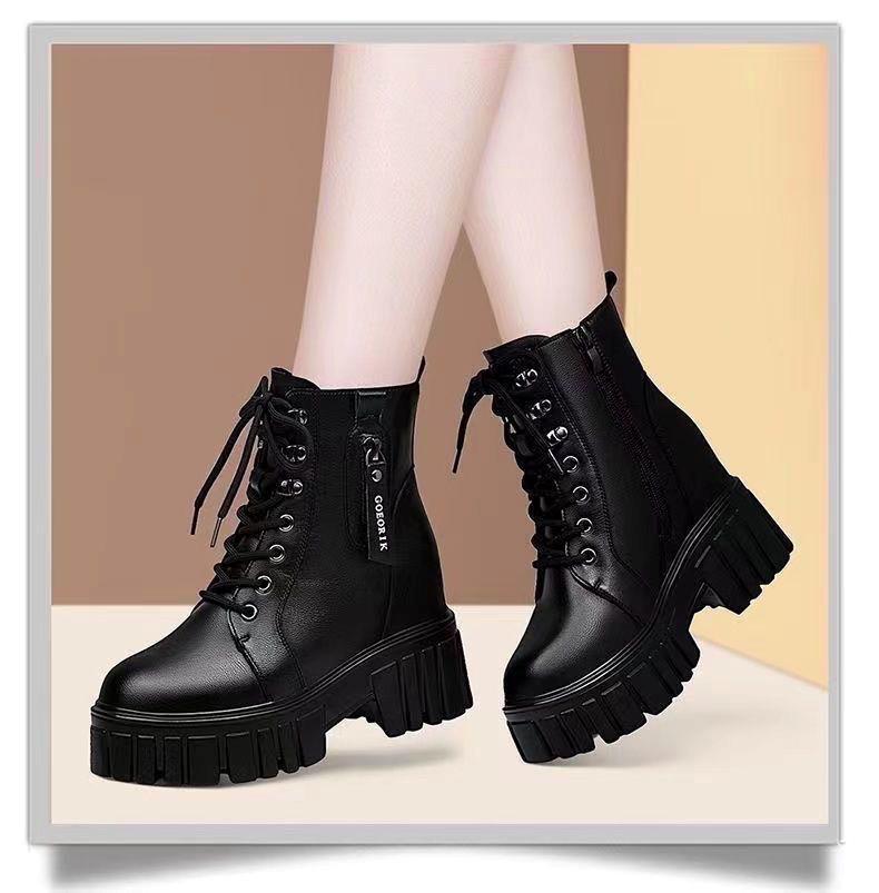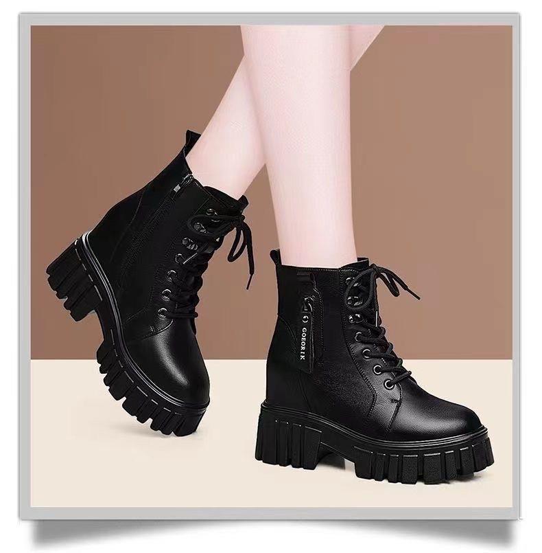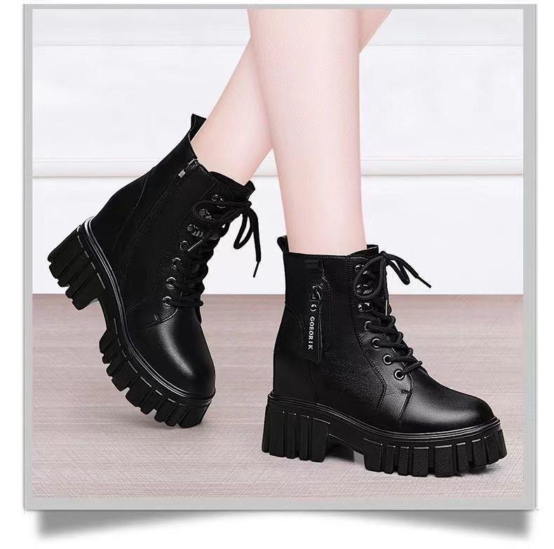 Женские ботинки оптом с фабрики на флисовой подкладке, осень-зима 2021, маленькие короткие ботинки на толстой подошве с ботинками в британском стиле увеличенной высоты