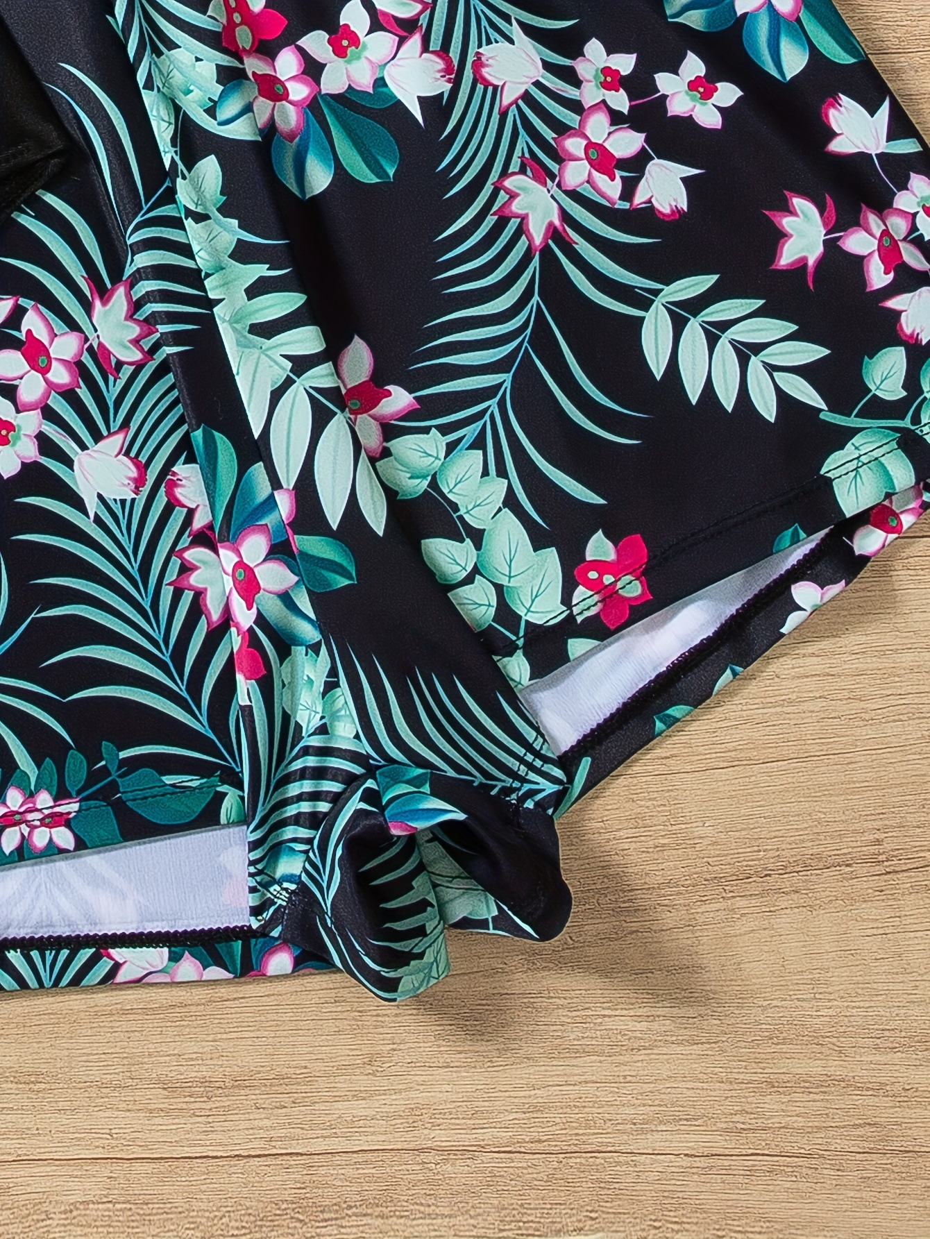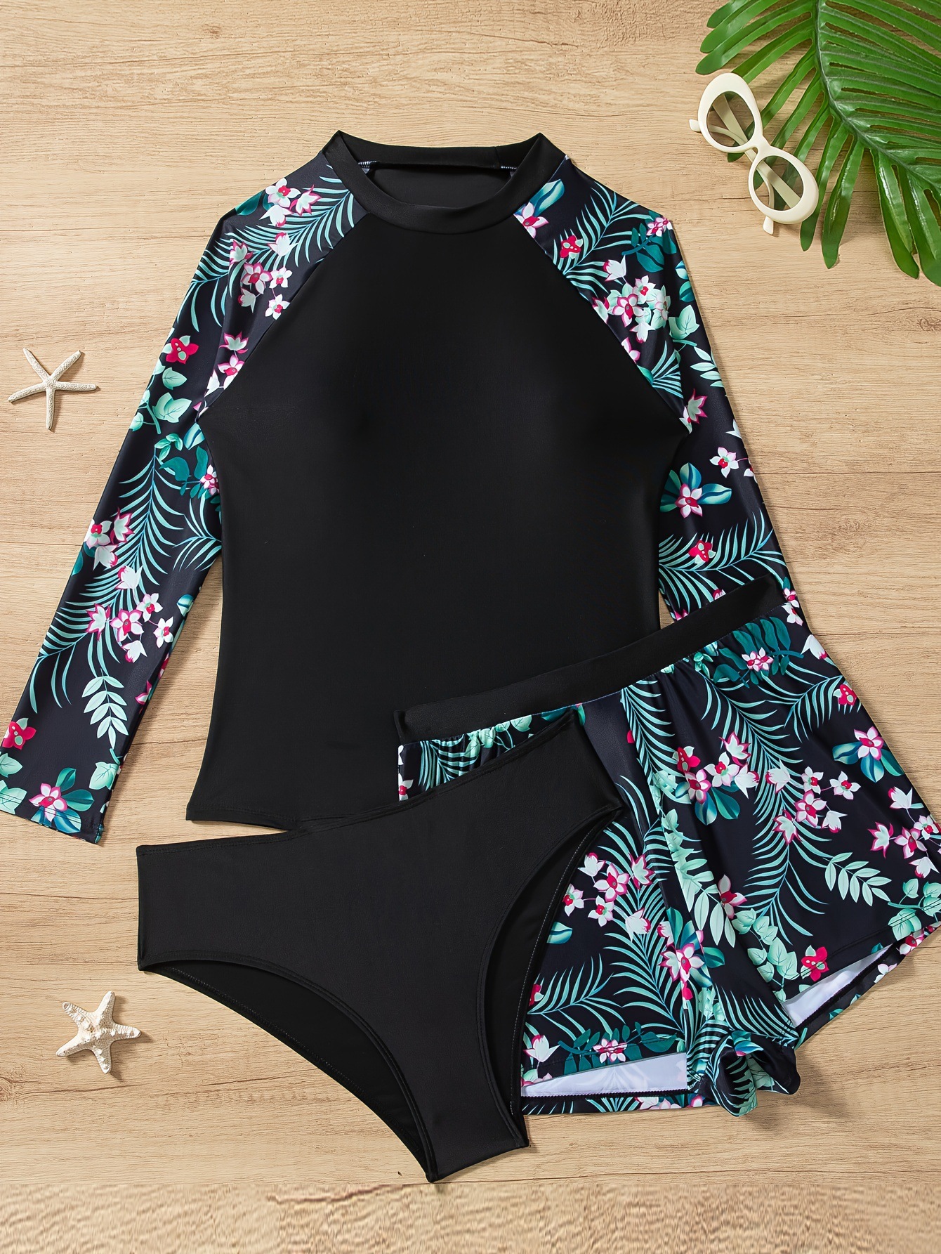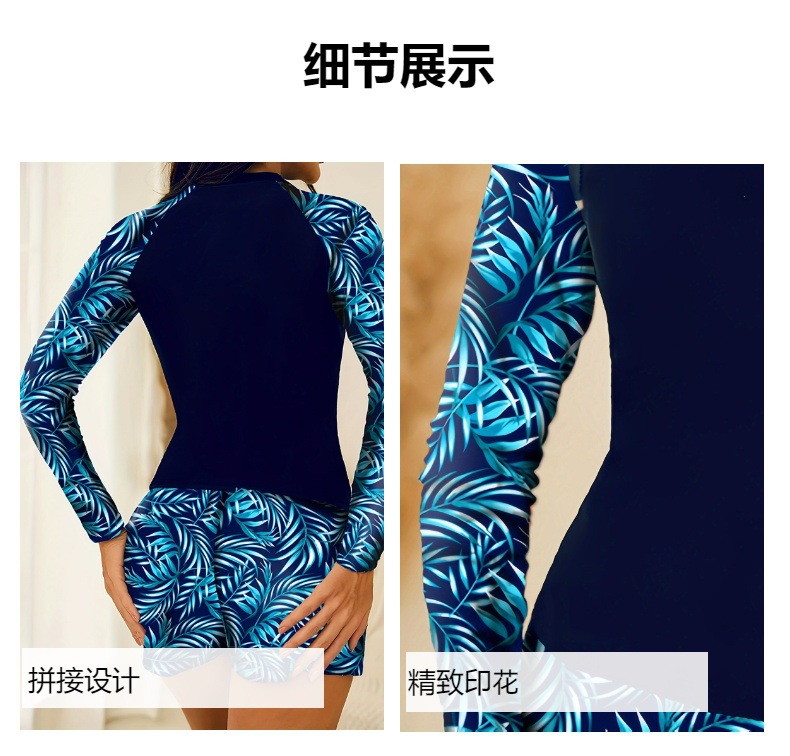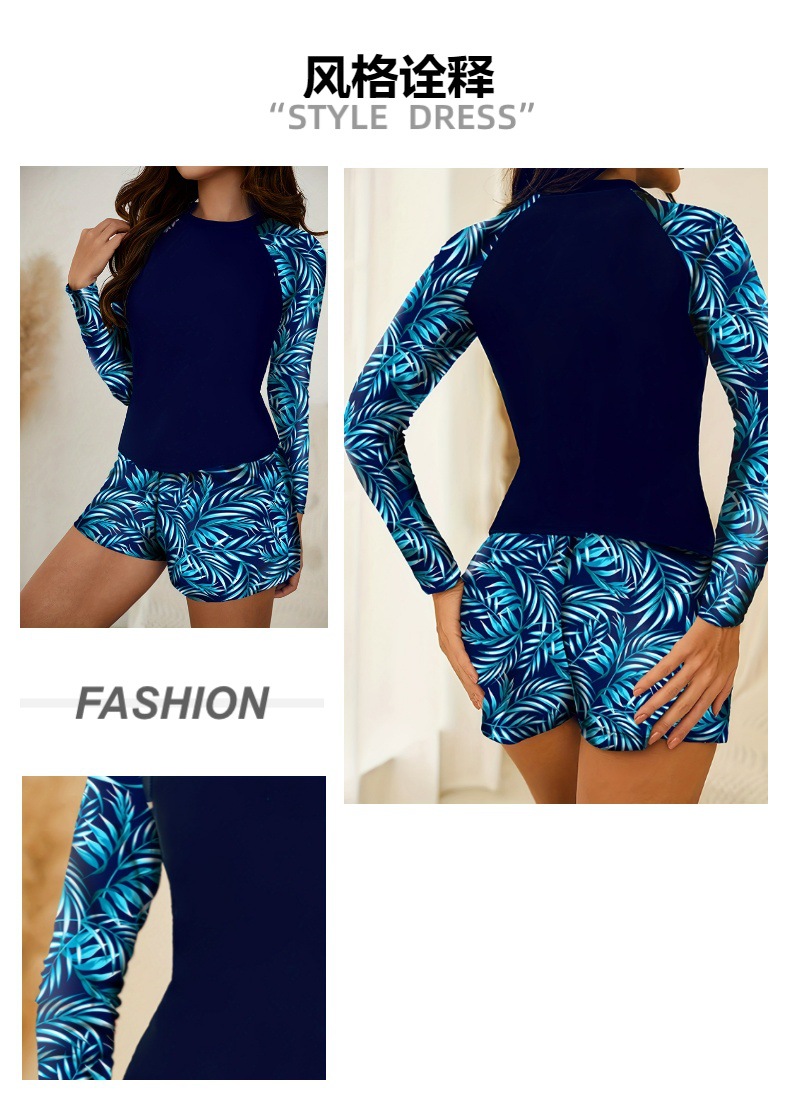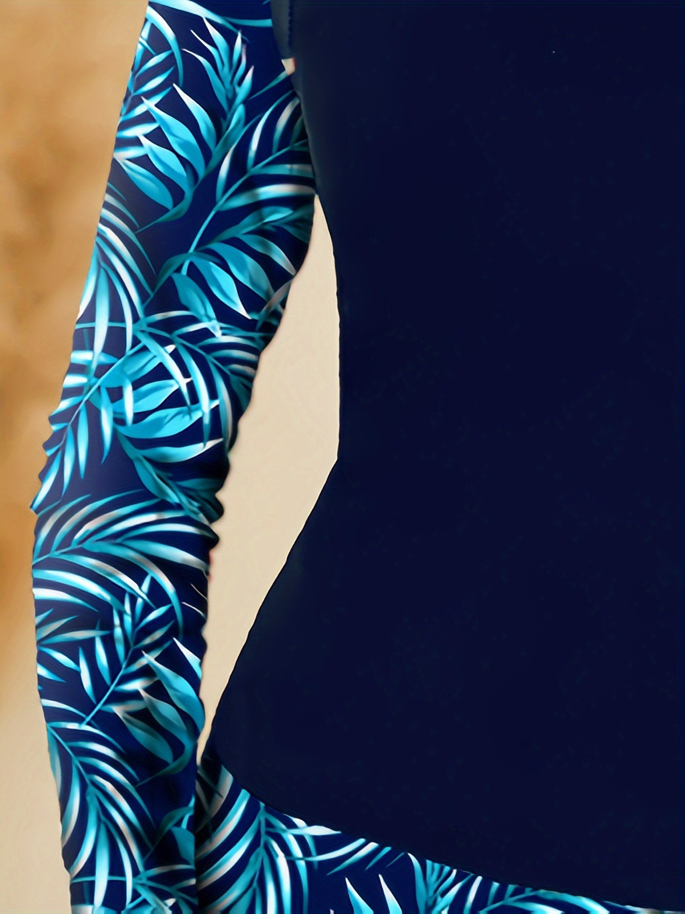 Купальник-бикини с длинными рукавами и цифровым принтом в стиле колор-блок, консервативный, европейско-американский, 2025 год, хит продаж для трансграничной торговли
