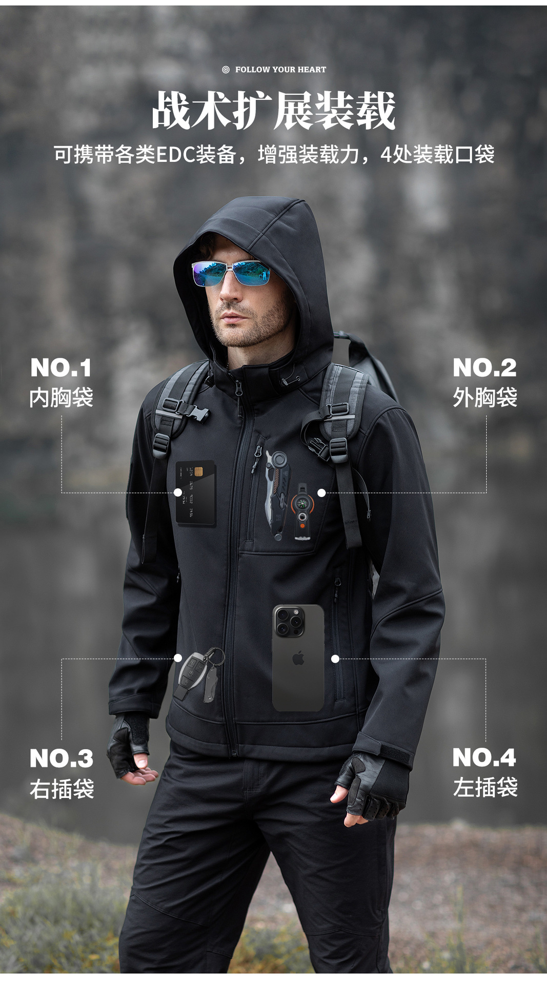 Мужская софтшелл-куртка с капюшоном, подходит для тактических активностей на открытом воздухе, теплая для осени и зимы, одежда для альпинизма.