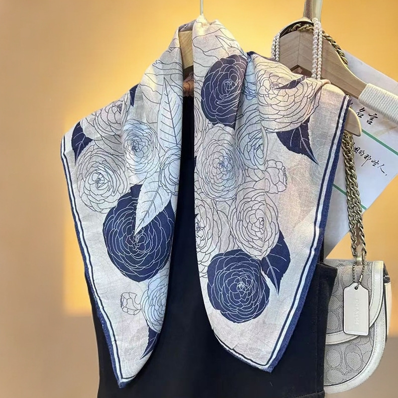 Шарф на весну, лето и осень 2025 года, накидка на шею, с эффектом хлопка и льна, маленький квадратный шарф, универсальная шаль, солнцезащитный шарф, с маленькими ромашками