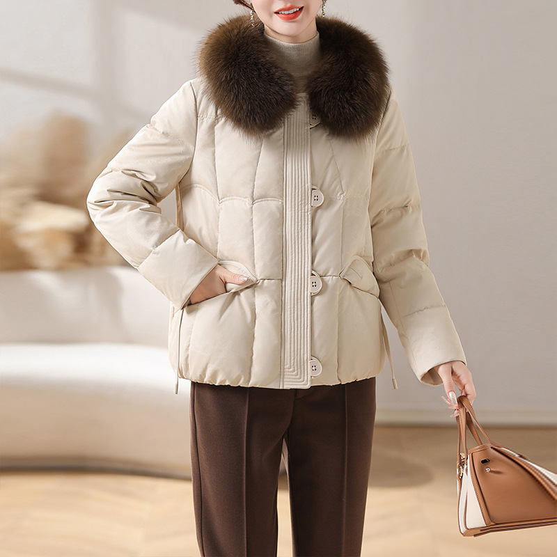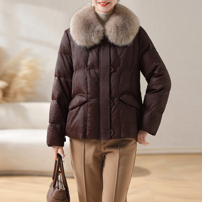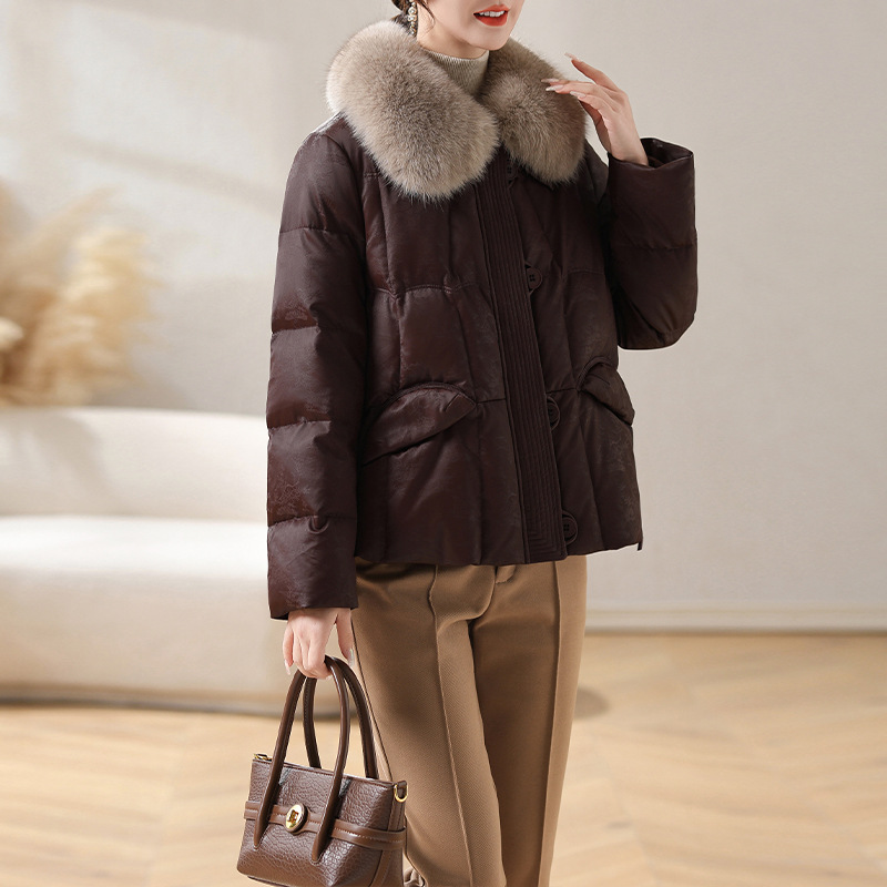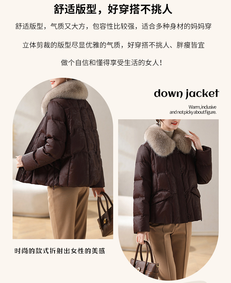 Мама пуховик модный новый настоящий лиса шерстяной воротник одноразовая экологическая кожа белая утка толстая куртка женская зимняя одежда среднего возраста