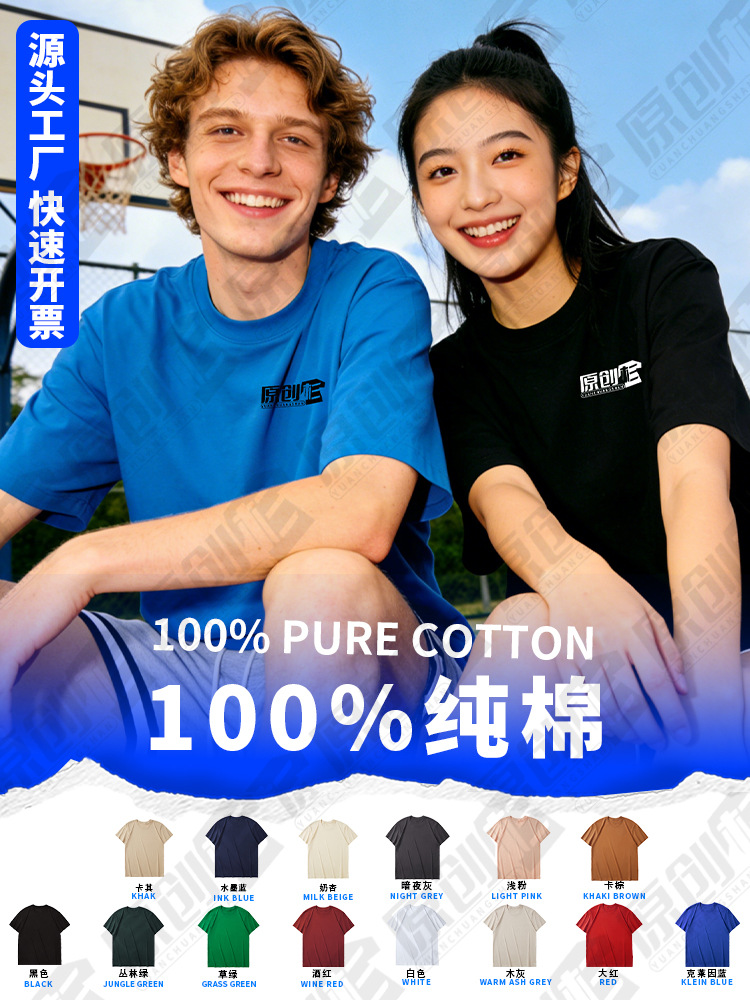 Футболка из чистого хлопка по индивидуальному заказу, экспорт европейского размера, американский размер, трансграничный логотип с короткими рукавами и принтом, рекламная культурная рубашка, футболка с круглым вырезом, рабочая одежда