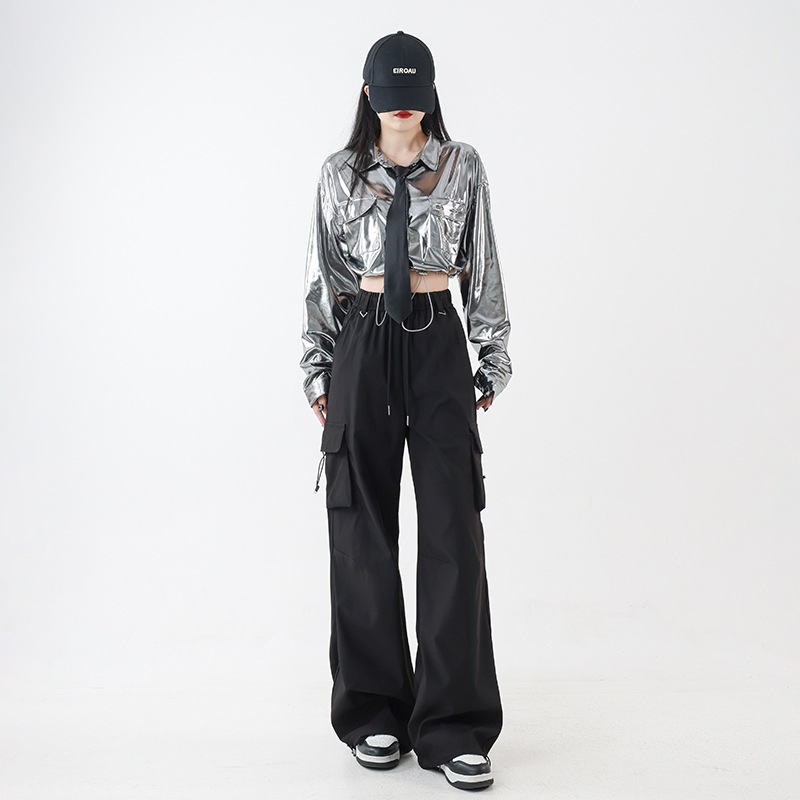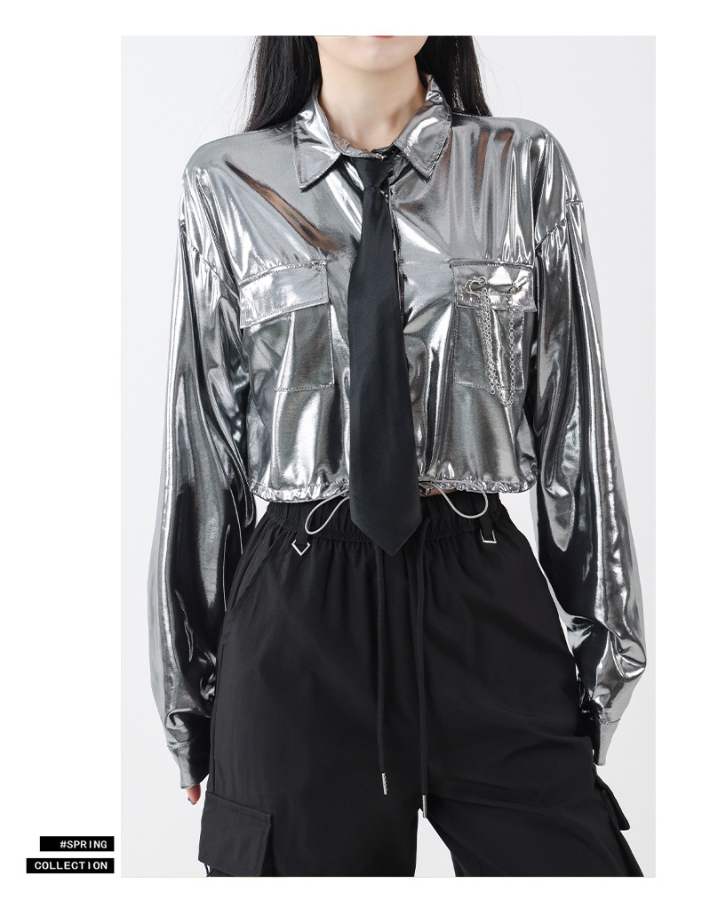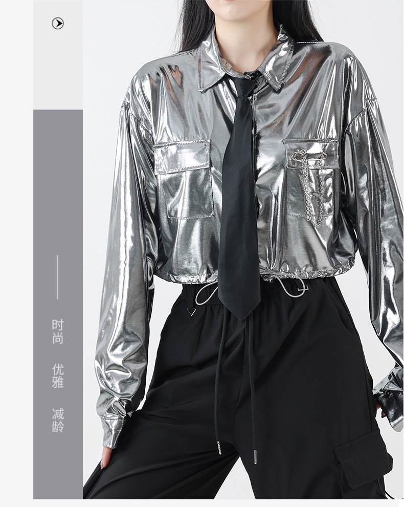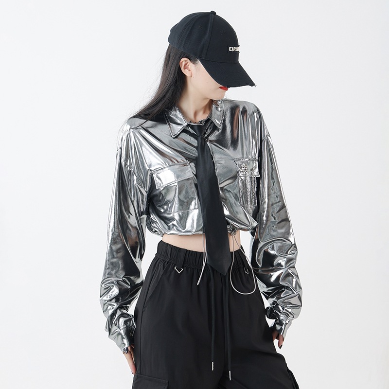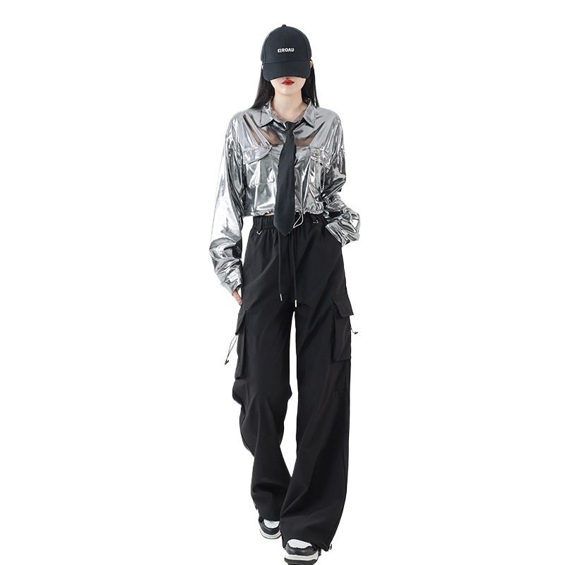 Джазовый танец девушки костюм с длинными рукавами пупок костюм модный жареный уличный джаз с серебряными блестками