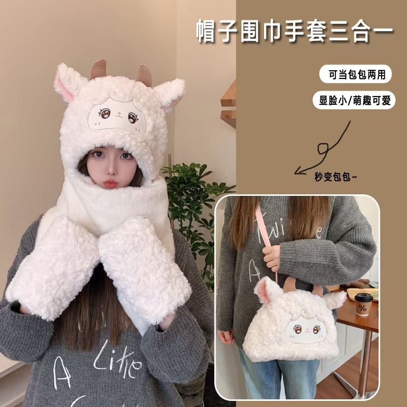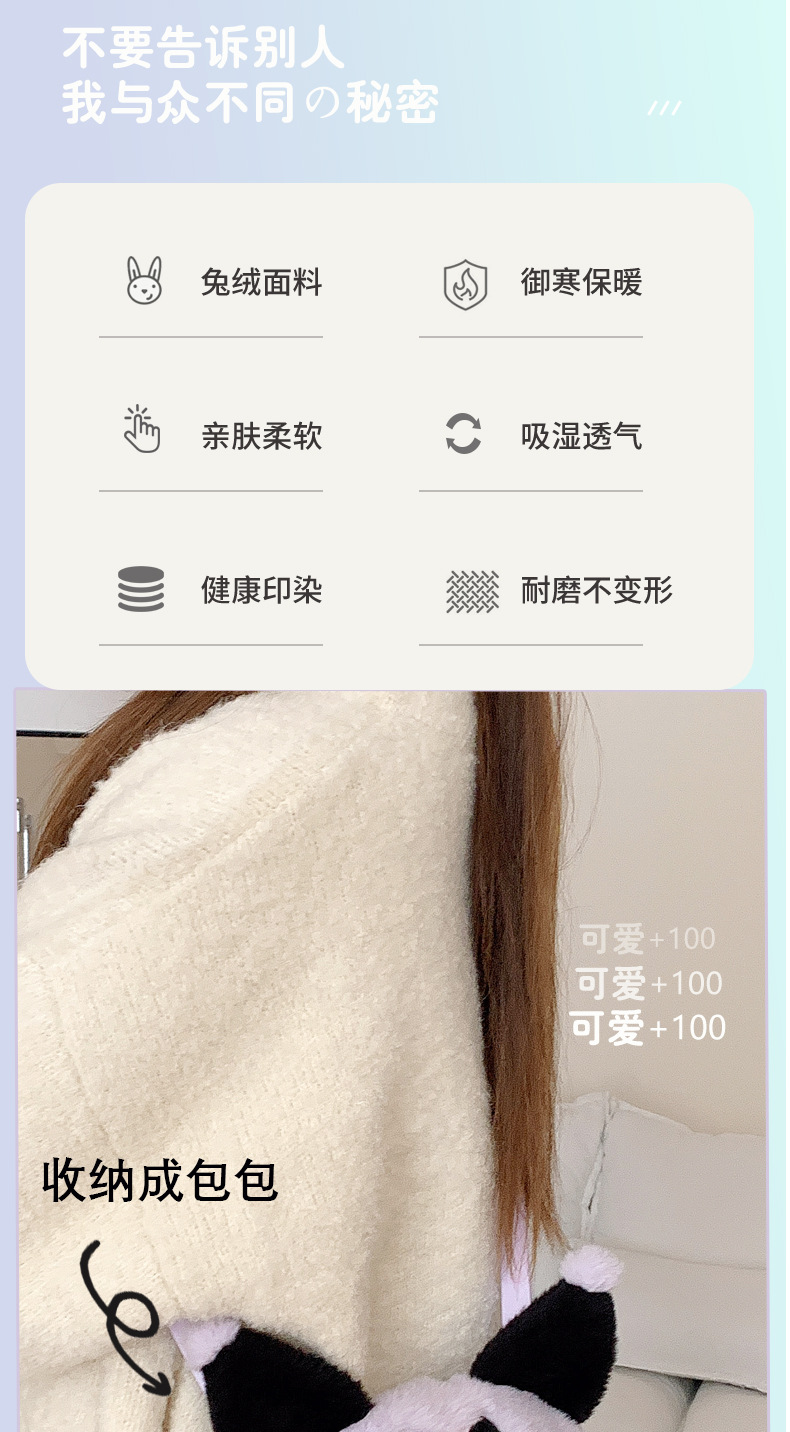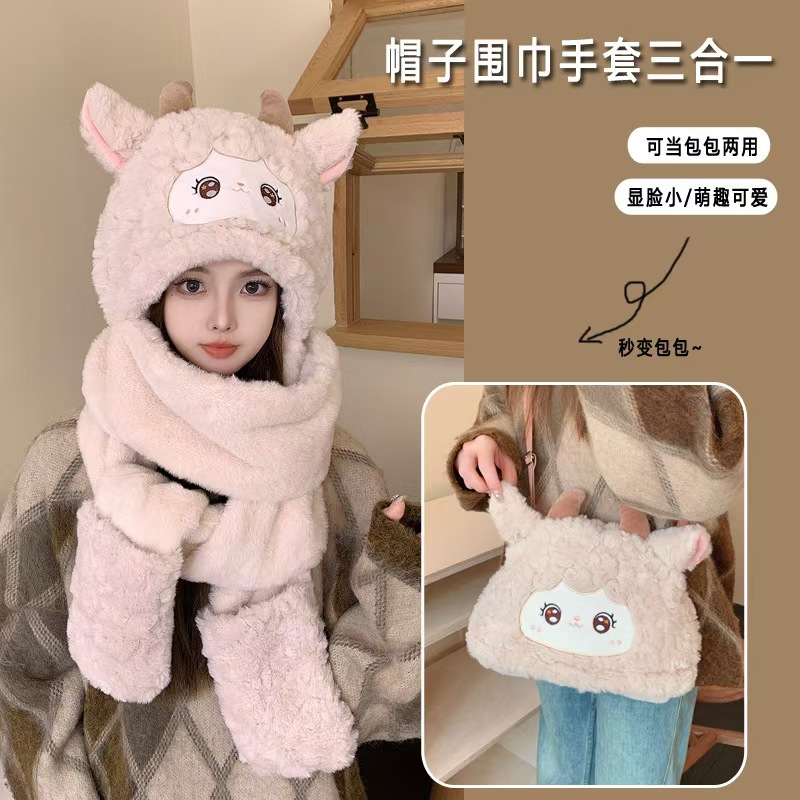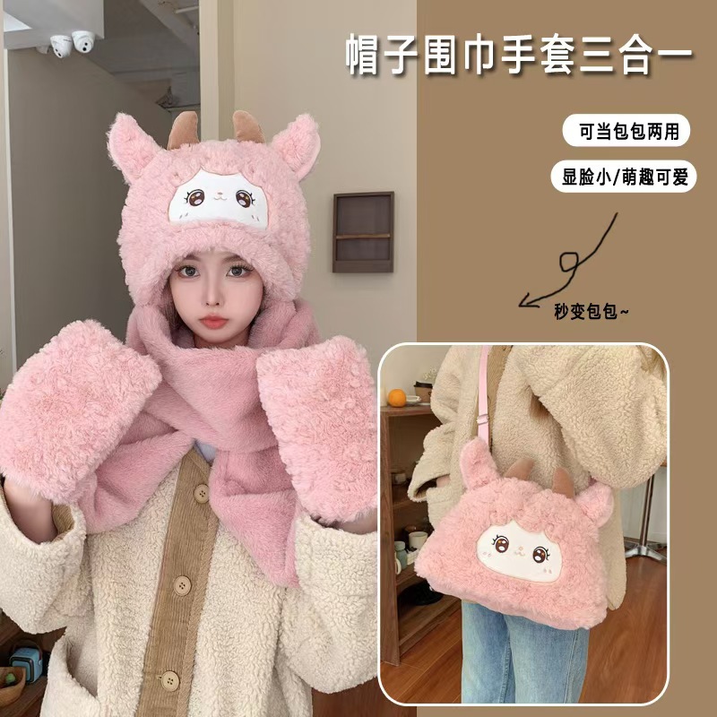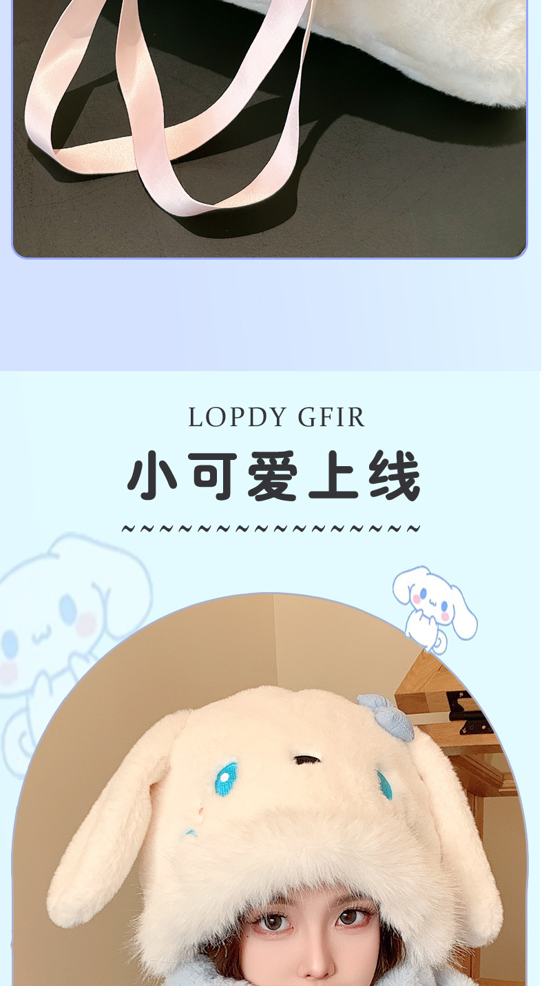 Бараничный бежевый — высококачественный бархат и утолщенный комплект из трех предметов для сумок двух назначения.; Белый ягненок — высококачественный бархатный утолщенный комплект из трех предметов для двух целей сумок.; Ягнено-розовый — высококачественный бархатный утолщенный комплект из трех предметов для сумок двух целей.; Панда — высококачественная бархатная утолщенная сумка-тройка двойного назначения.; «Корица Собака» — высококачественный бархат и утолщенный комплект из трех предметов, сумка двойного назначения.; Kuromi — высококачественный бархатный утолщенный комплект из трех предметов, сумка двойного назначения.; Melody — высококачественный бархатный утолщенный комплект из трех предметов, сумка двойного назначения.