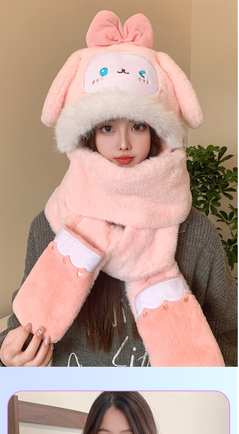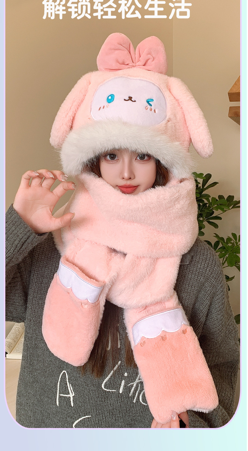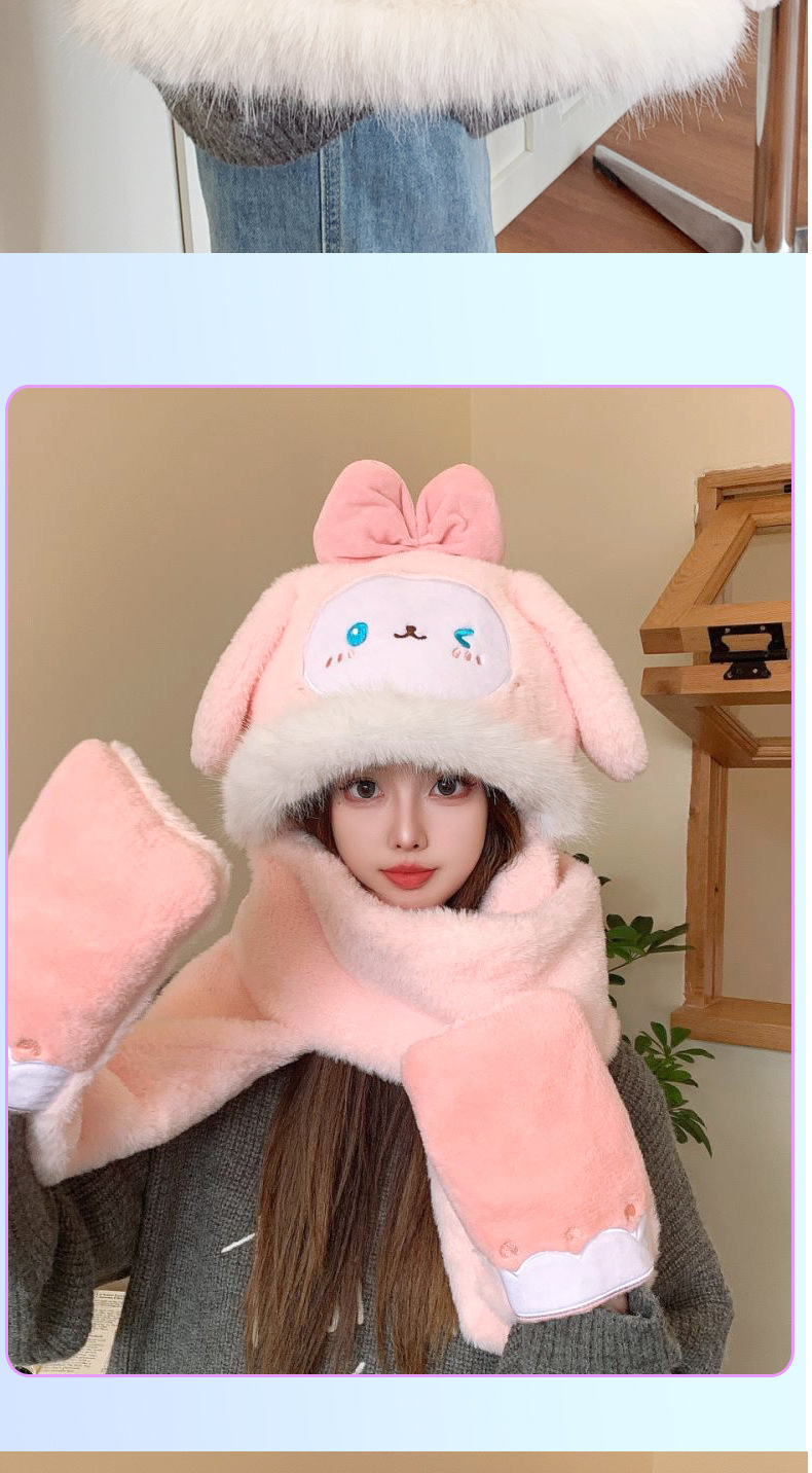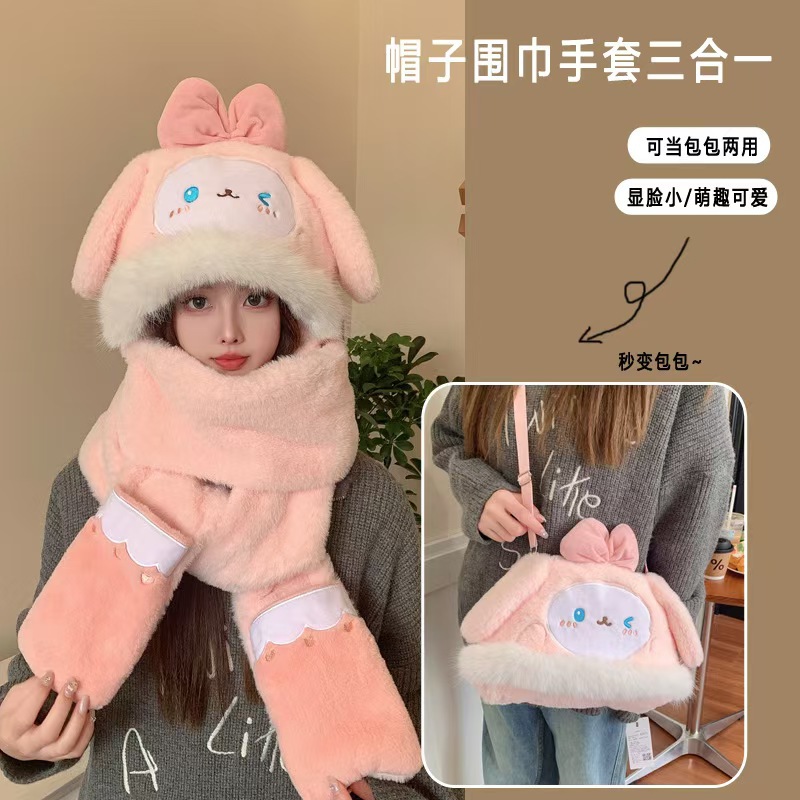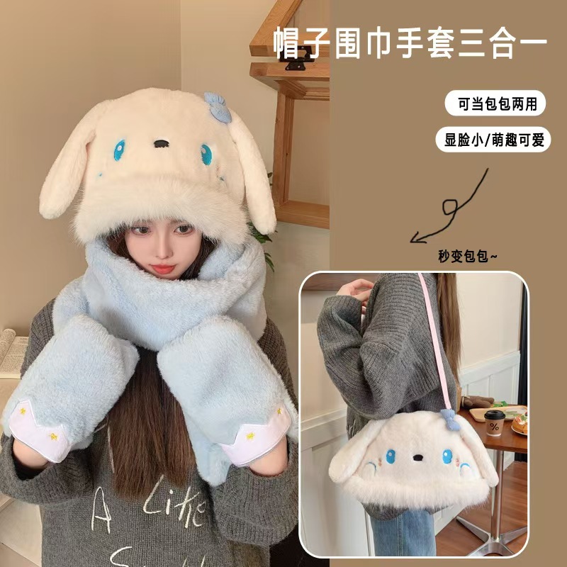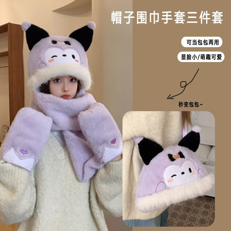 Sanrio Panda Lamep набор из трех частей женский милый плюшевый мультфильм теплая одна шляпа