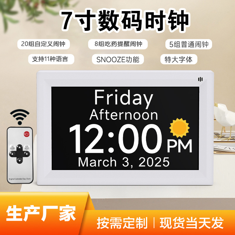 2025 Новинка 7inch года, цифровые часы с большим шрифтом, календарь, цифровые часы для пожилых людей, напоминание о лекарствах, будильник