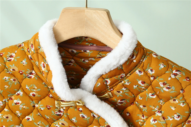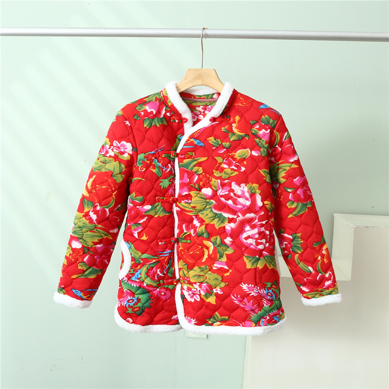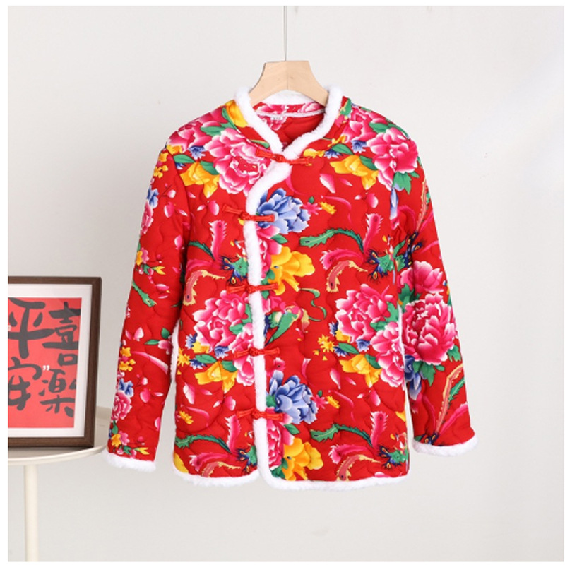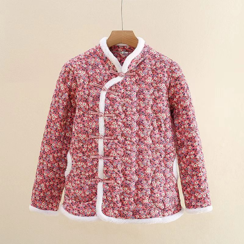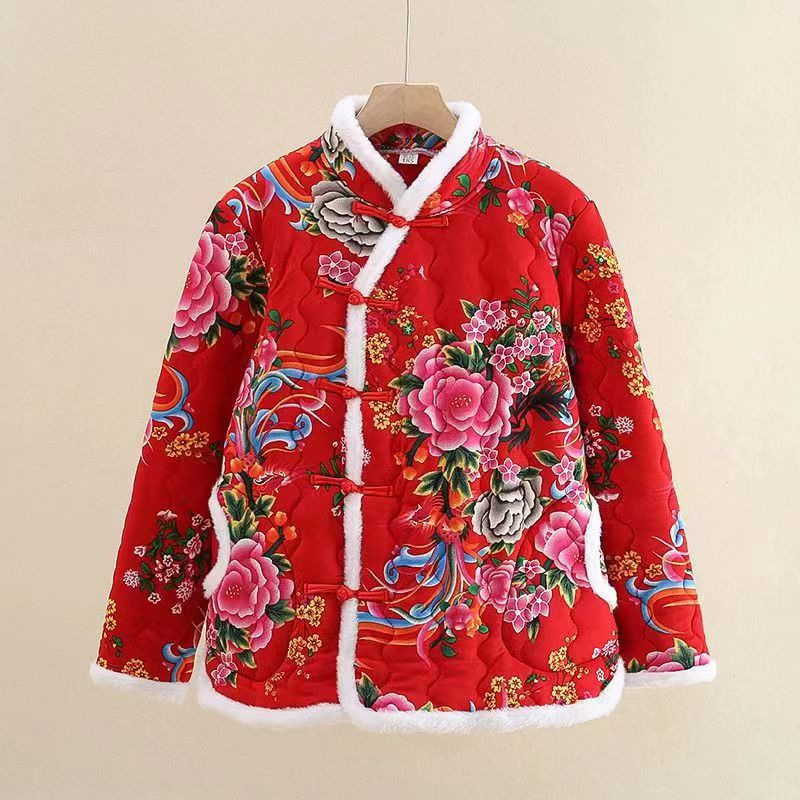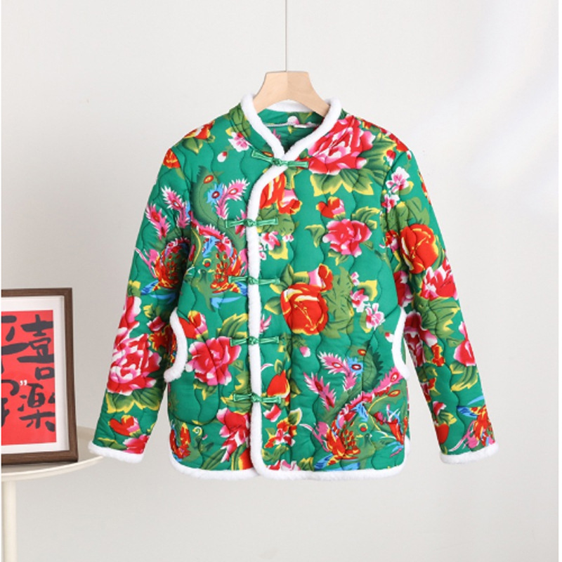 Зимой северо-восточный цветок хлопчатобумажная куртка 2024 новый интернет-красный взрывной китайский ветер пуговица мама топ толстый цветок хлопчатобумажная одежда