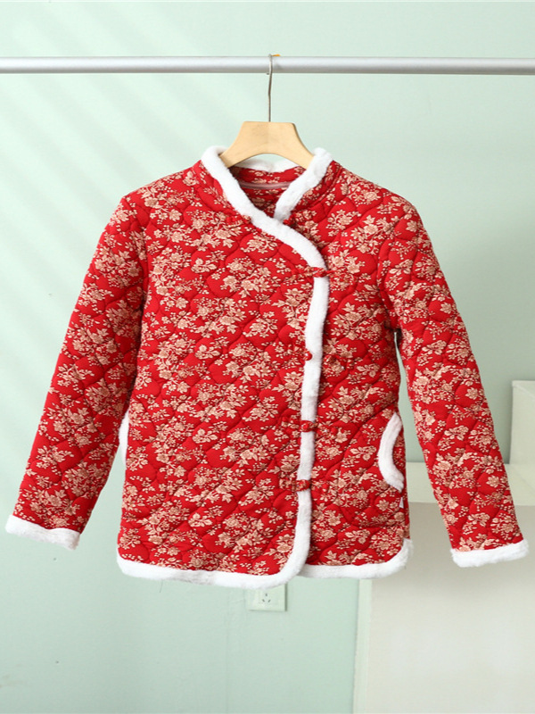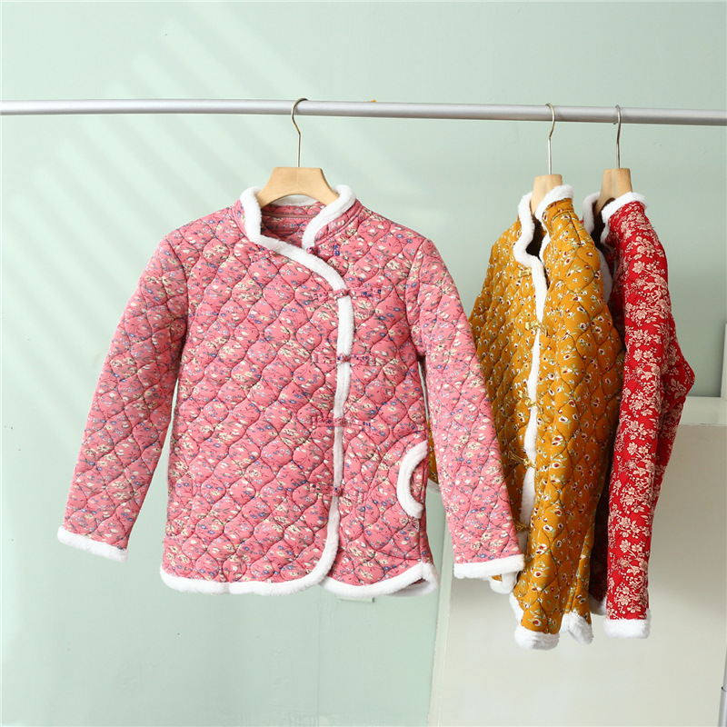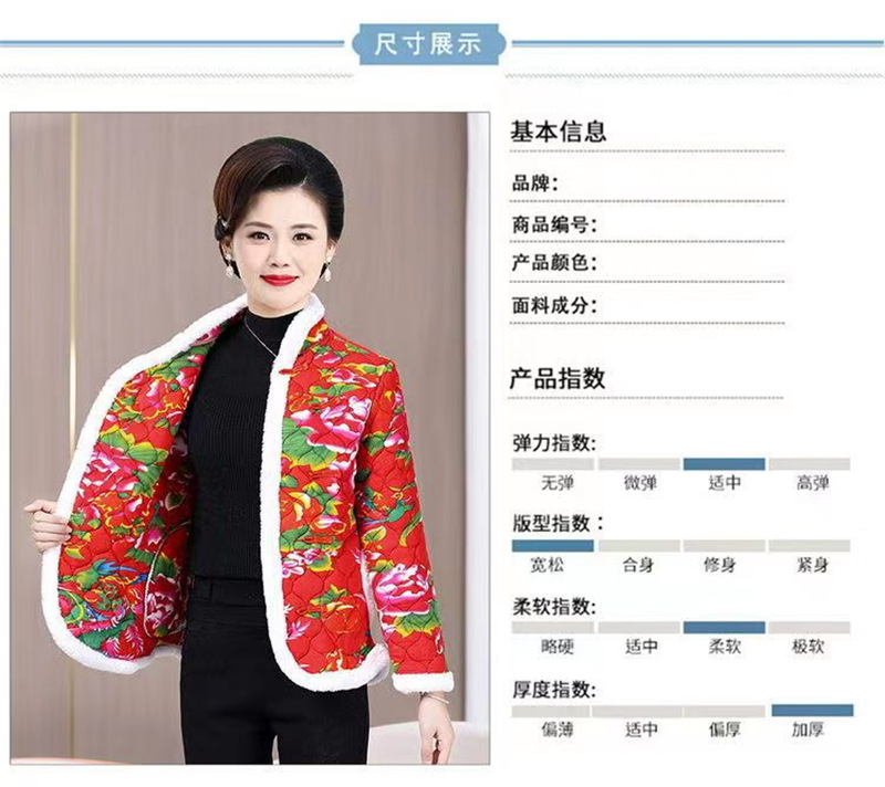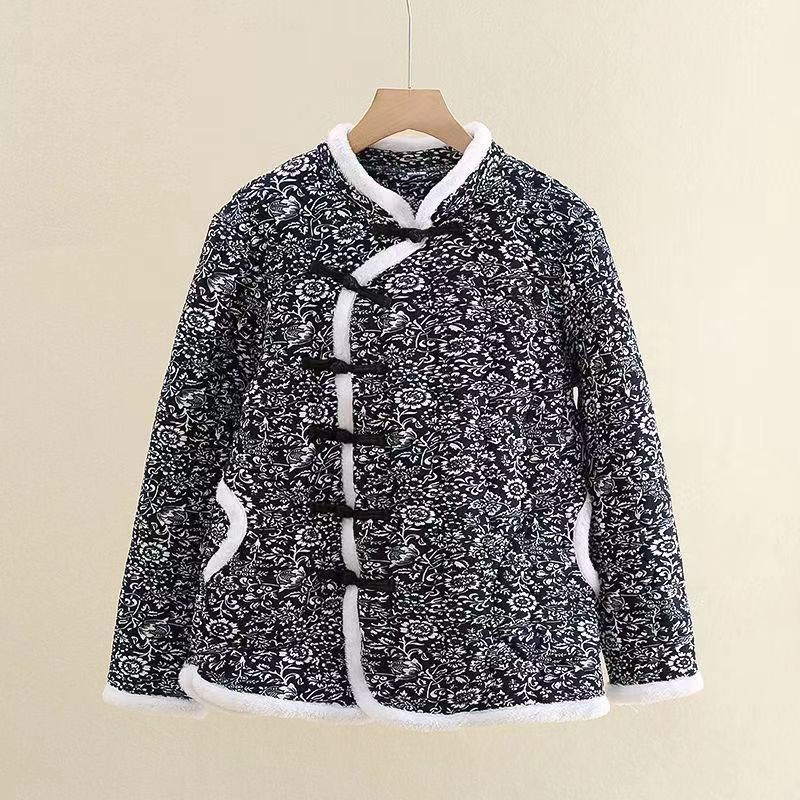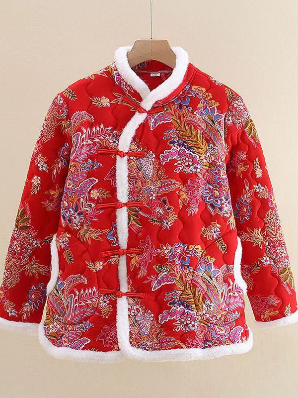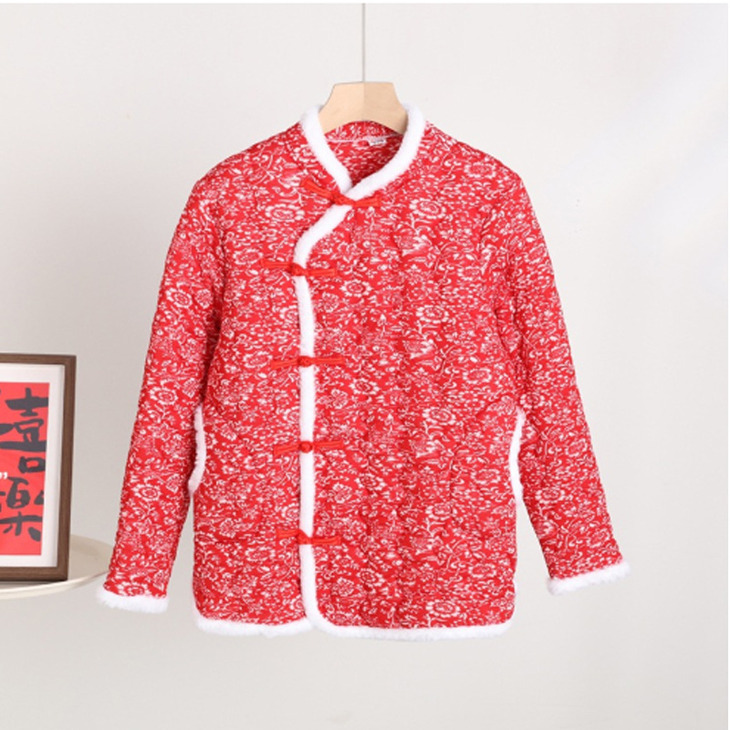 Зимой северо-восточный цветок хлопчатобумажная куртка 2024 новый интернет-красный взрывной китайский ветер пуговица мама топ толстый цветок хлопчатобумажная одежда